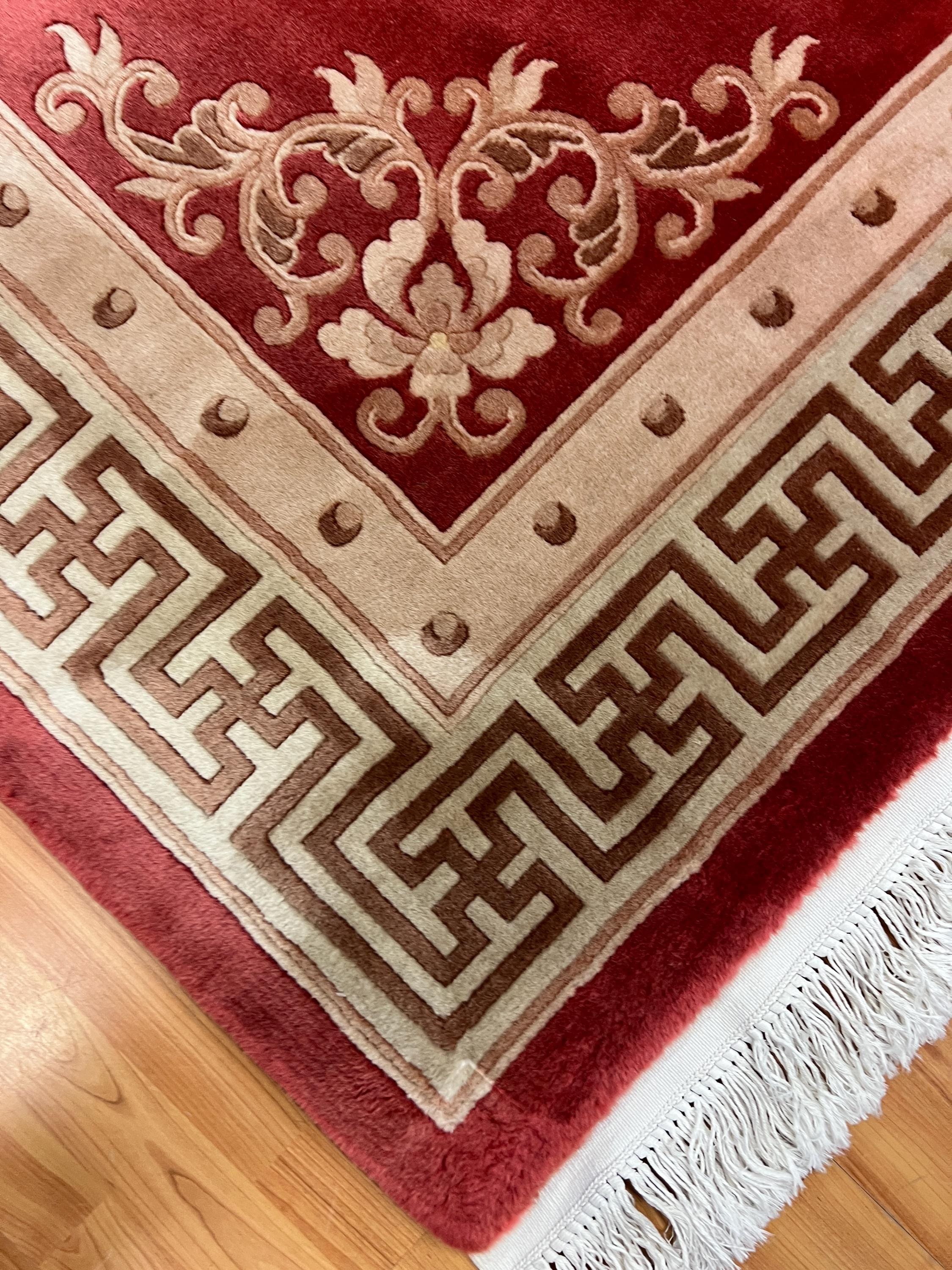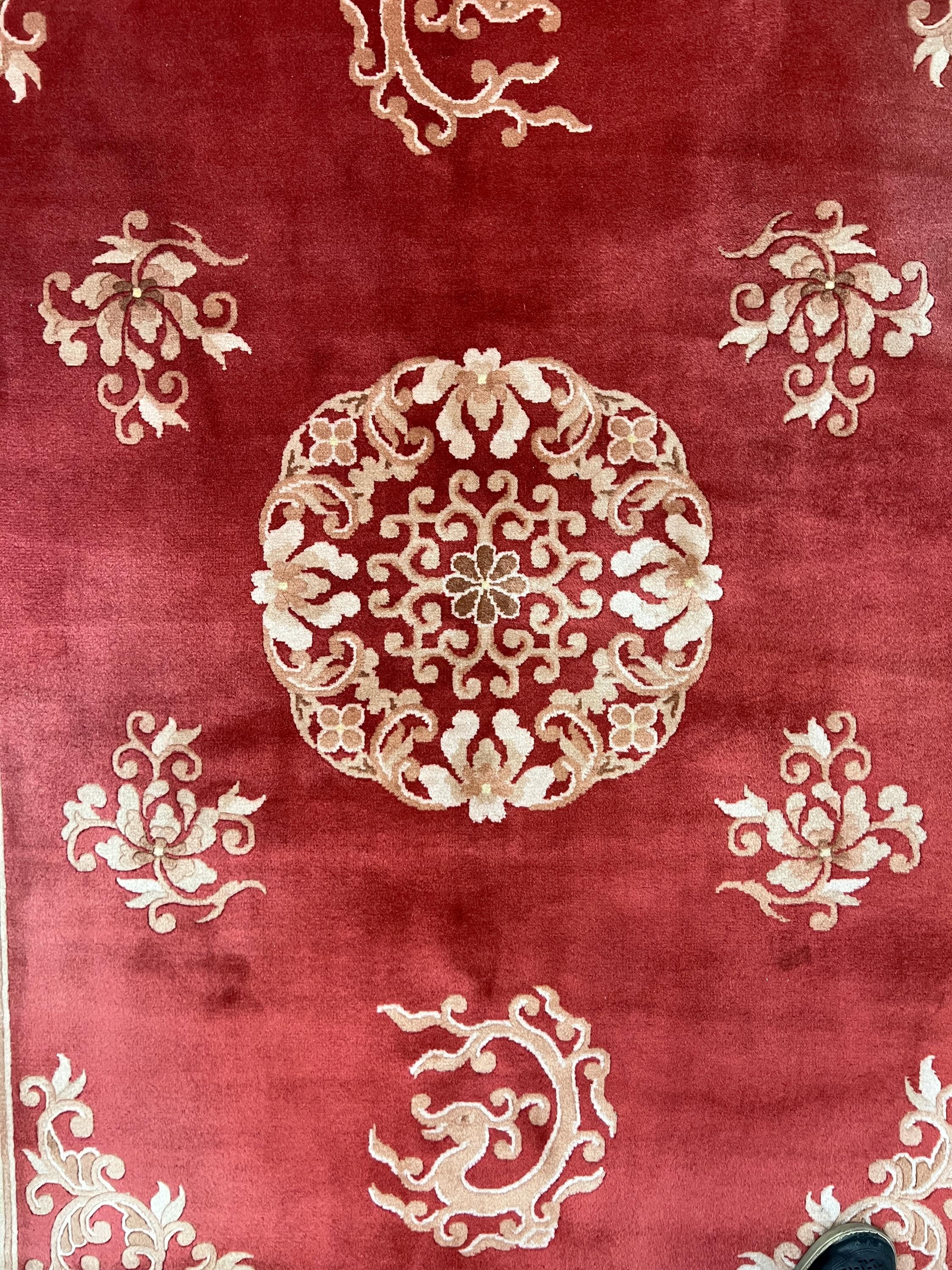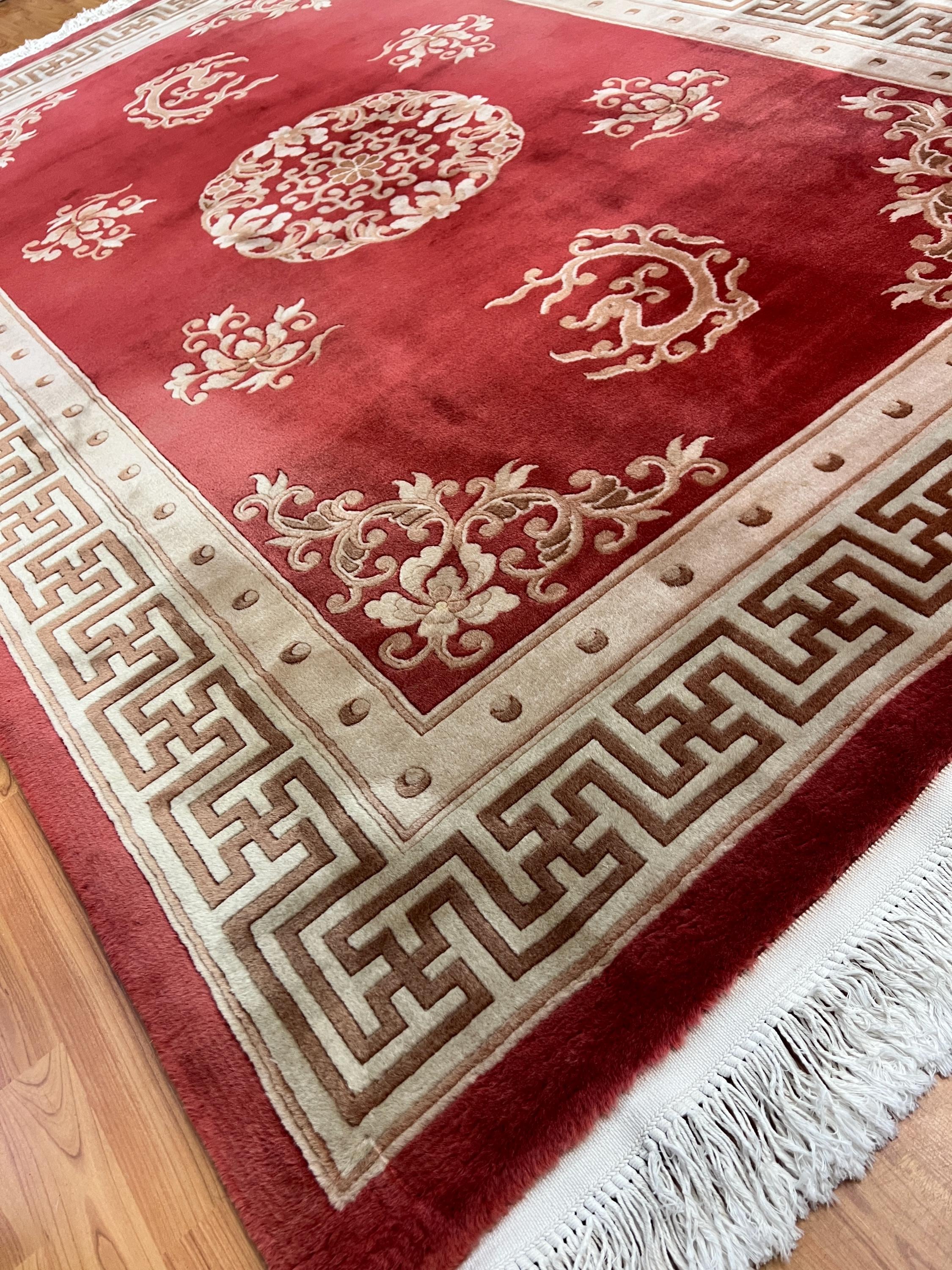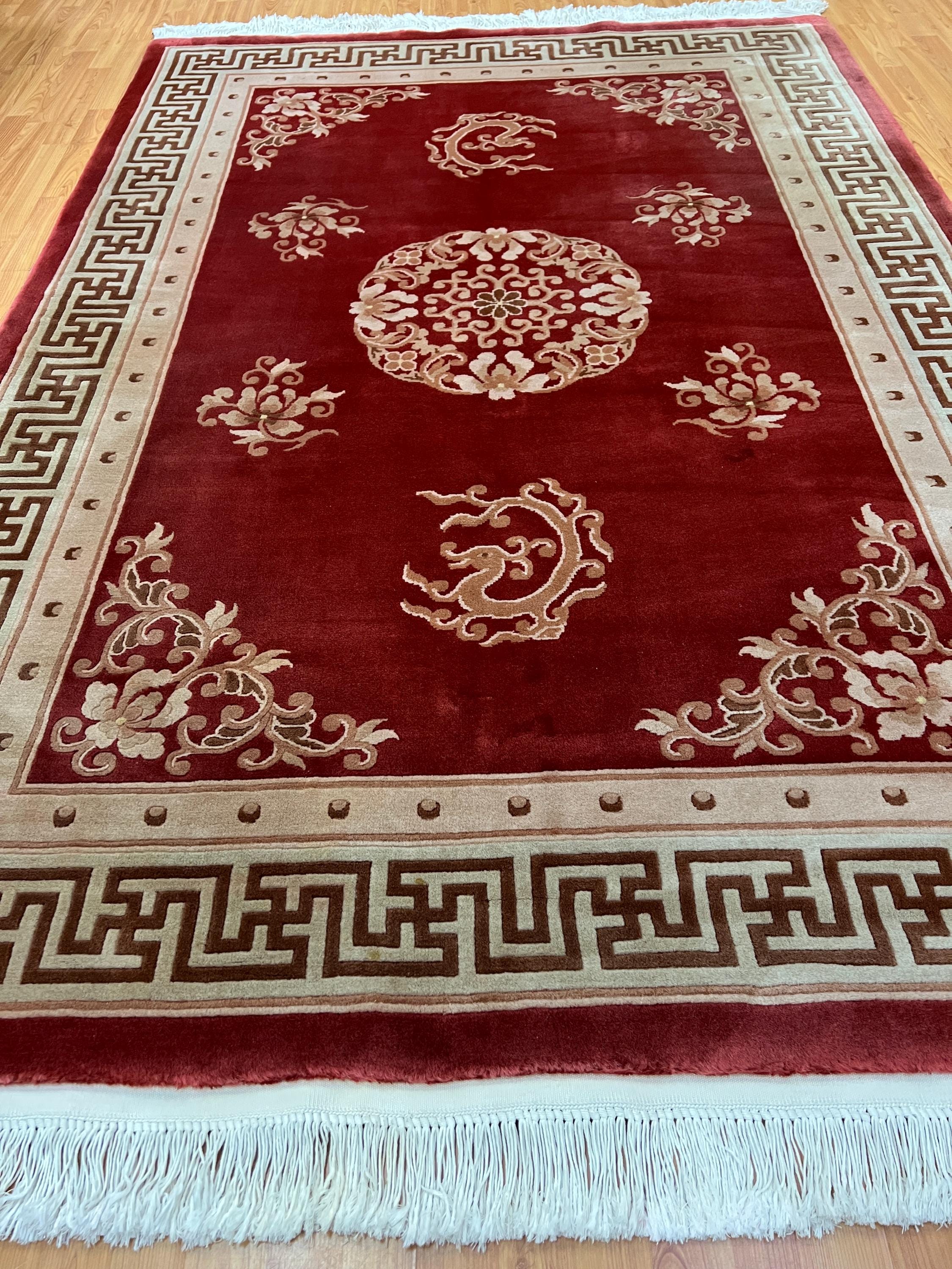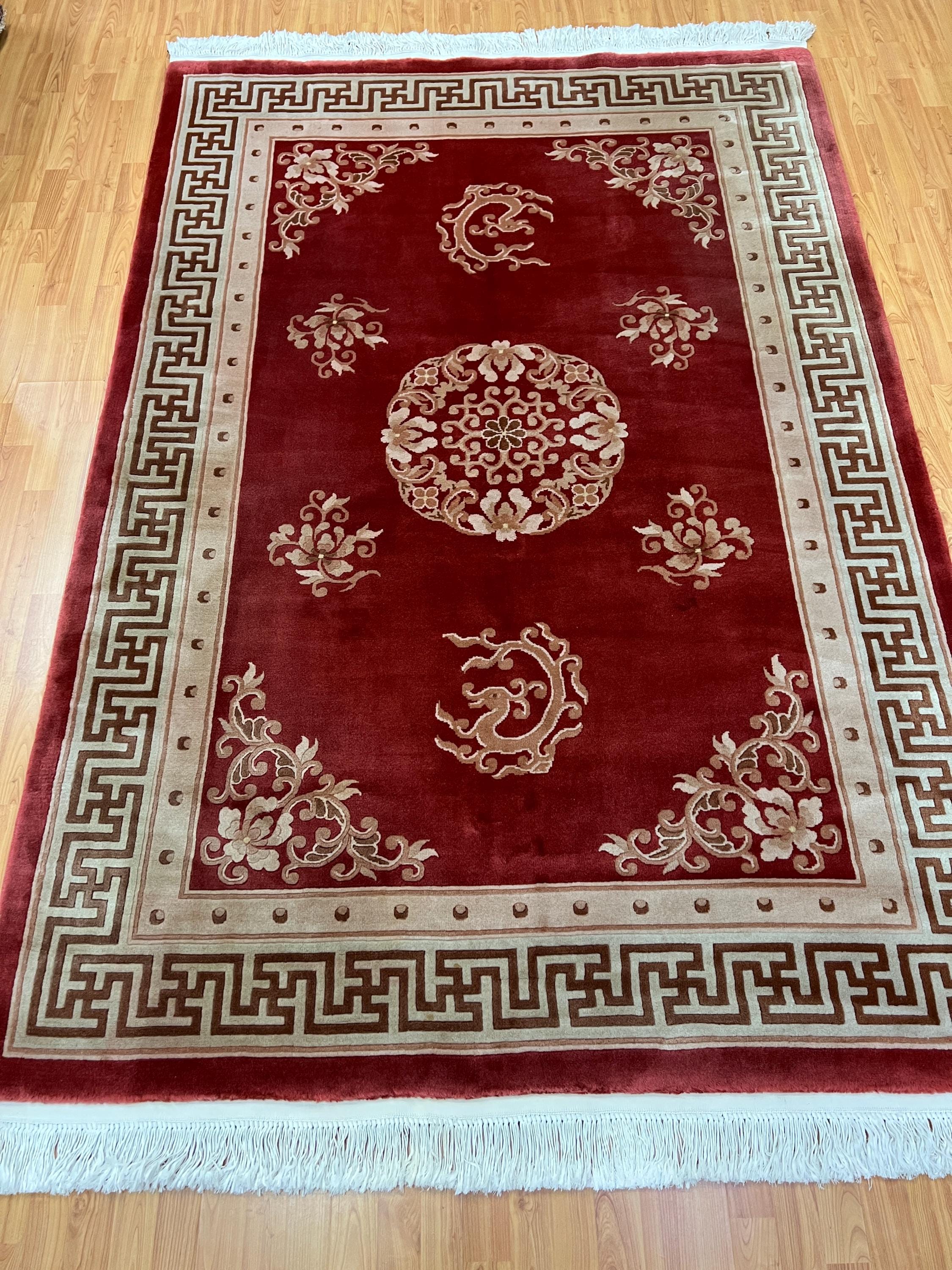 Antique Chinese Rugs and Carpets as opposed to most of the antique rug productions were woven almost exclusively for internal consumption. Since they were mostly sheltered from European and western influences, this offers us the reason why these carpets have a very unique truly ethnically Chinese look and appeal. Only during the early part of the 19th century did they open their markets to the countries of the west (for rugs – they have been exporting porcelain, bronzes, wooden and other works of art for many years prior to the 19th century). It is during this period (the early 1900′s and on) that we see a major and unmistakable change in the production, abandoning the traditional ornamental look to a more open and even Chinese Art Deco design. Rich in culture, history and folklore Chinese carpets incorporate design almost never seen in any other type of rug. Dragons, local art and ornamental objects are almost always a trademark of these productions.