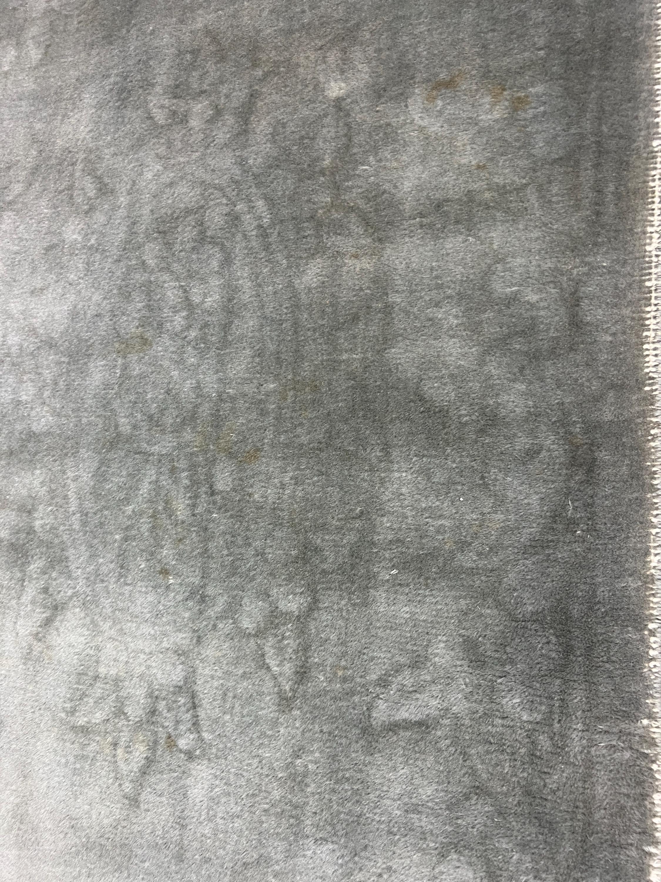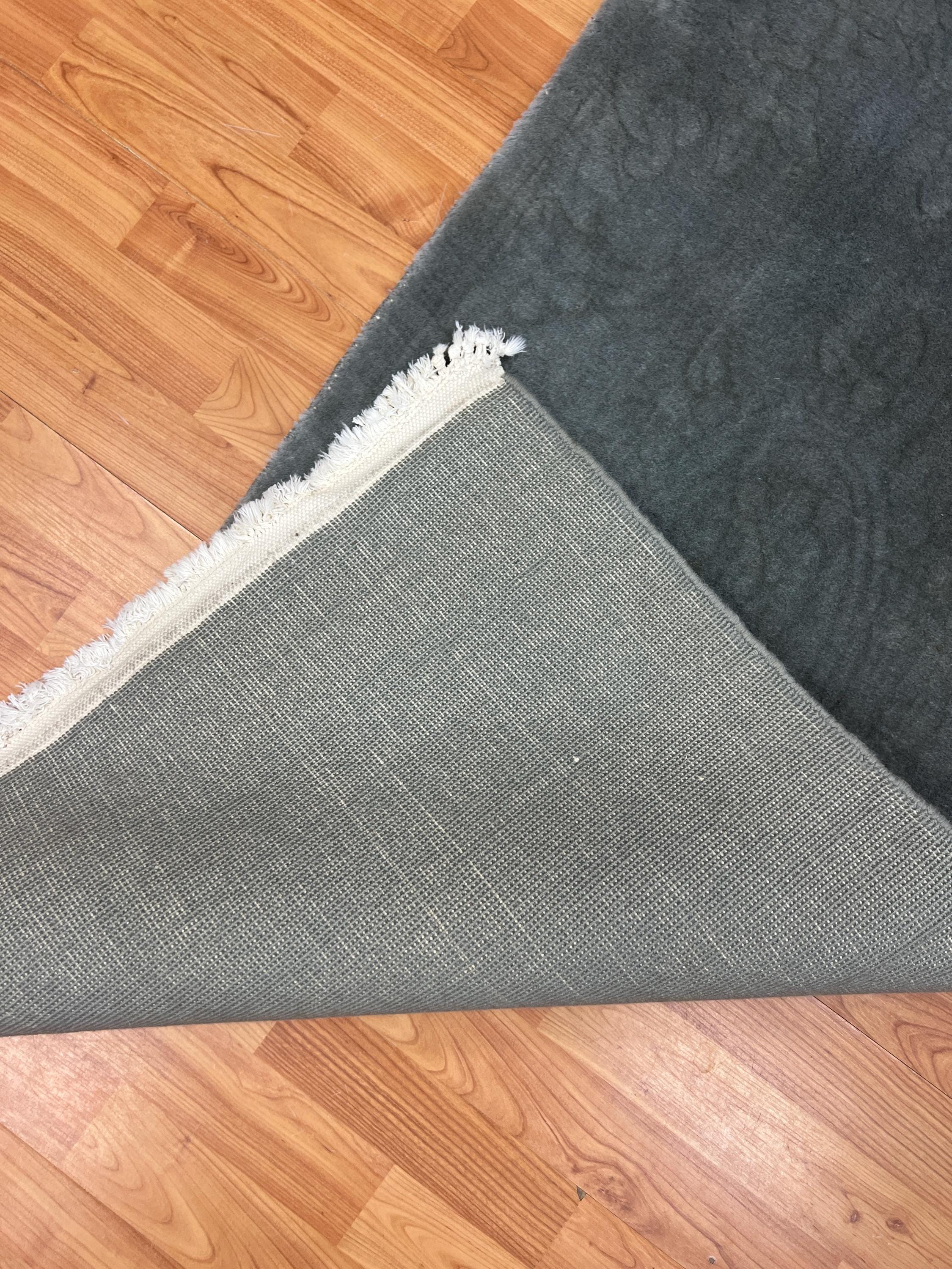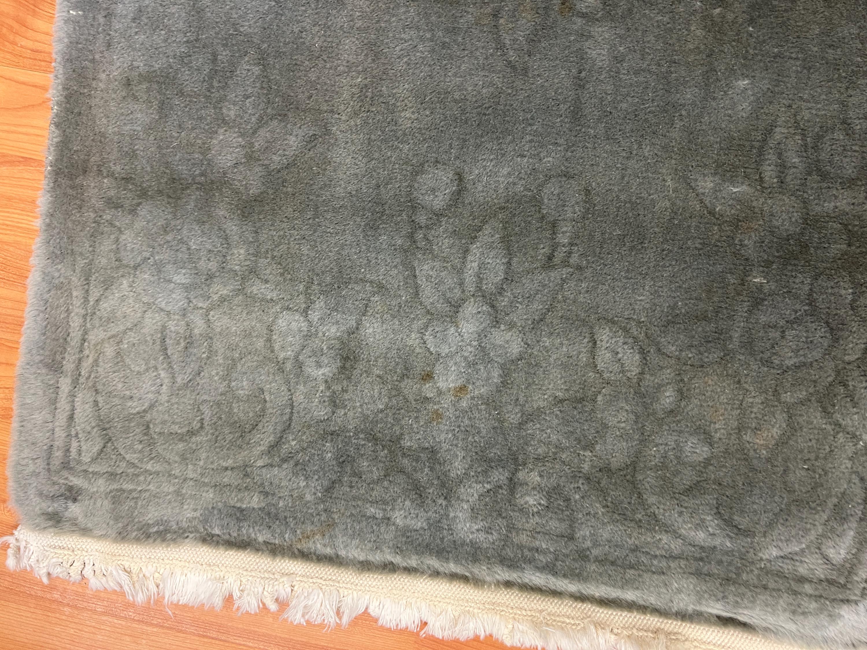 This gorgeous Oriental rug is a 2' x 4' Chinese Art Deco with a carved design and grey background, circa 2010s. This hand knotted rug is made with a 100% wool, has a full pile and is in good condition.