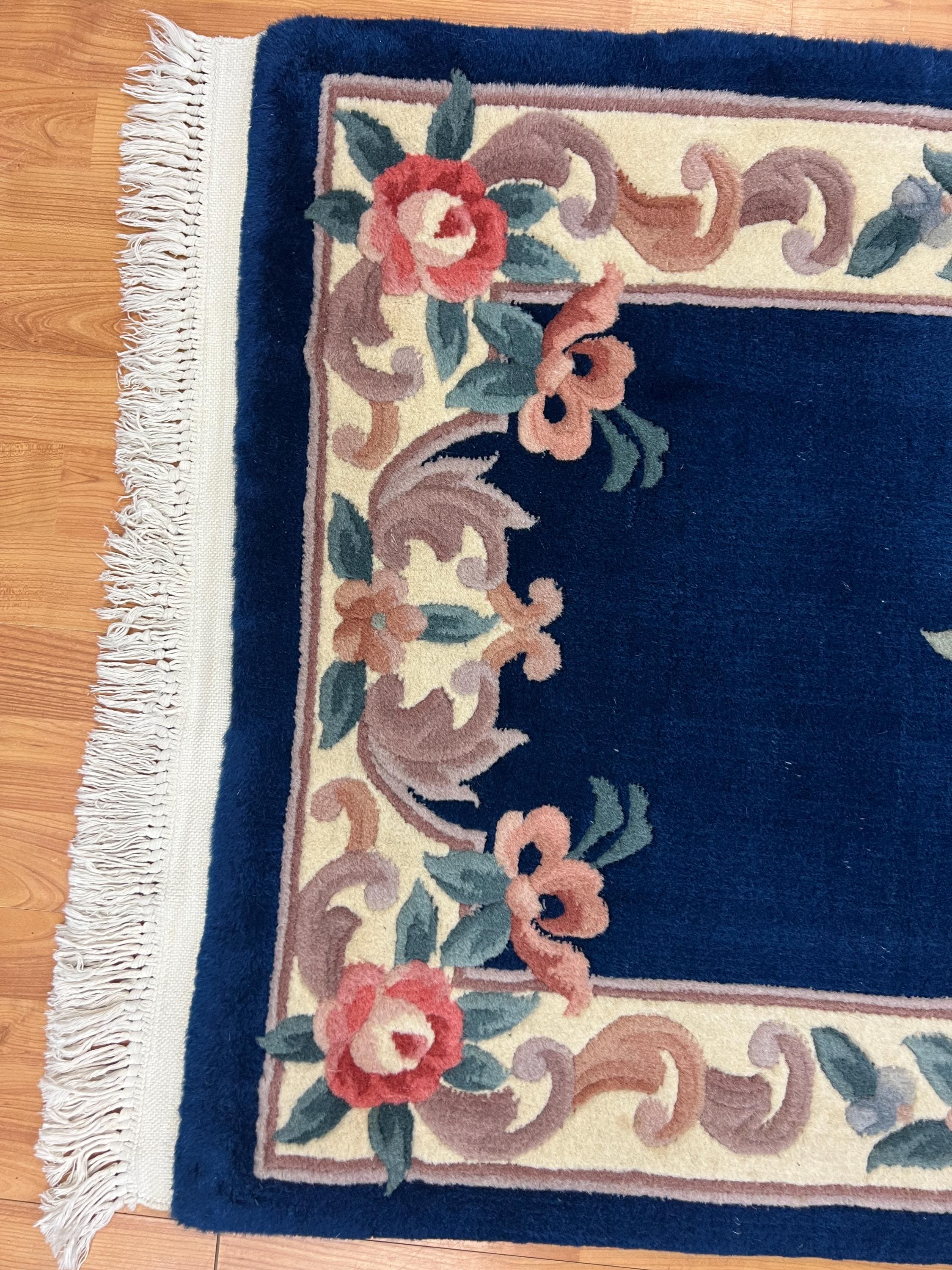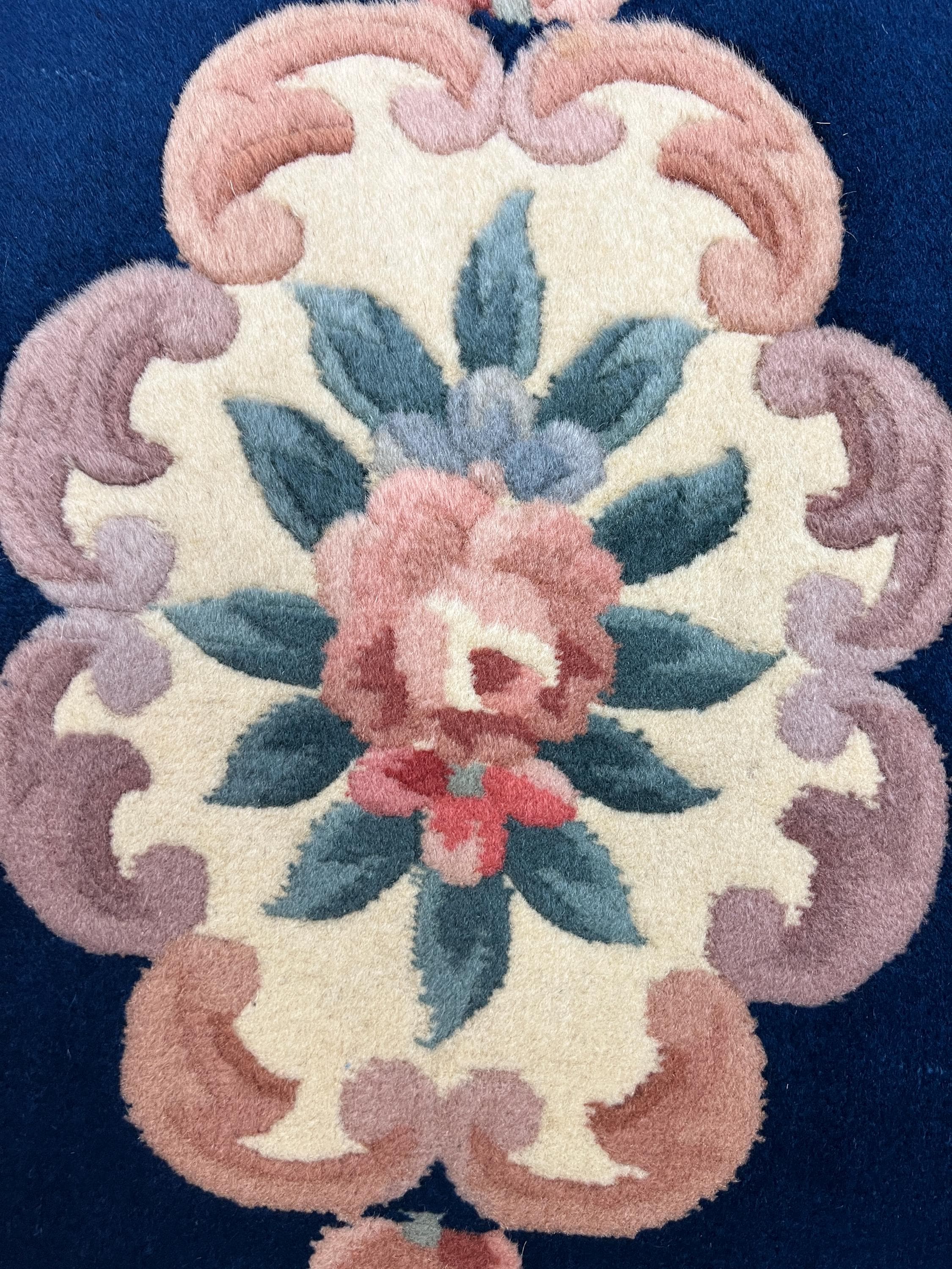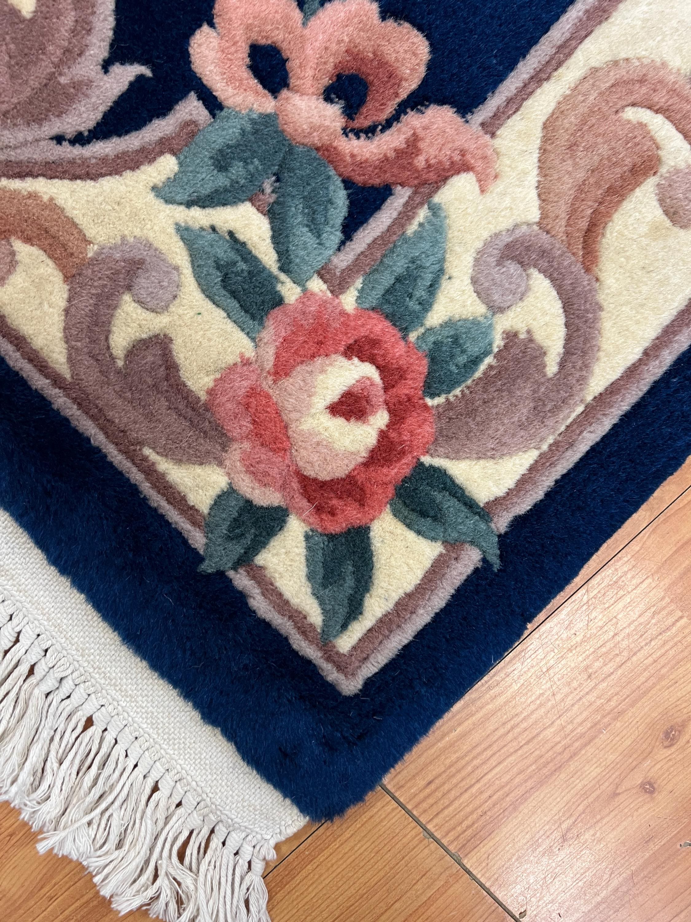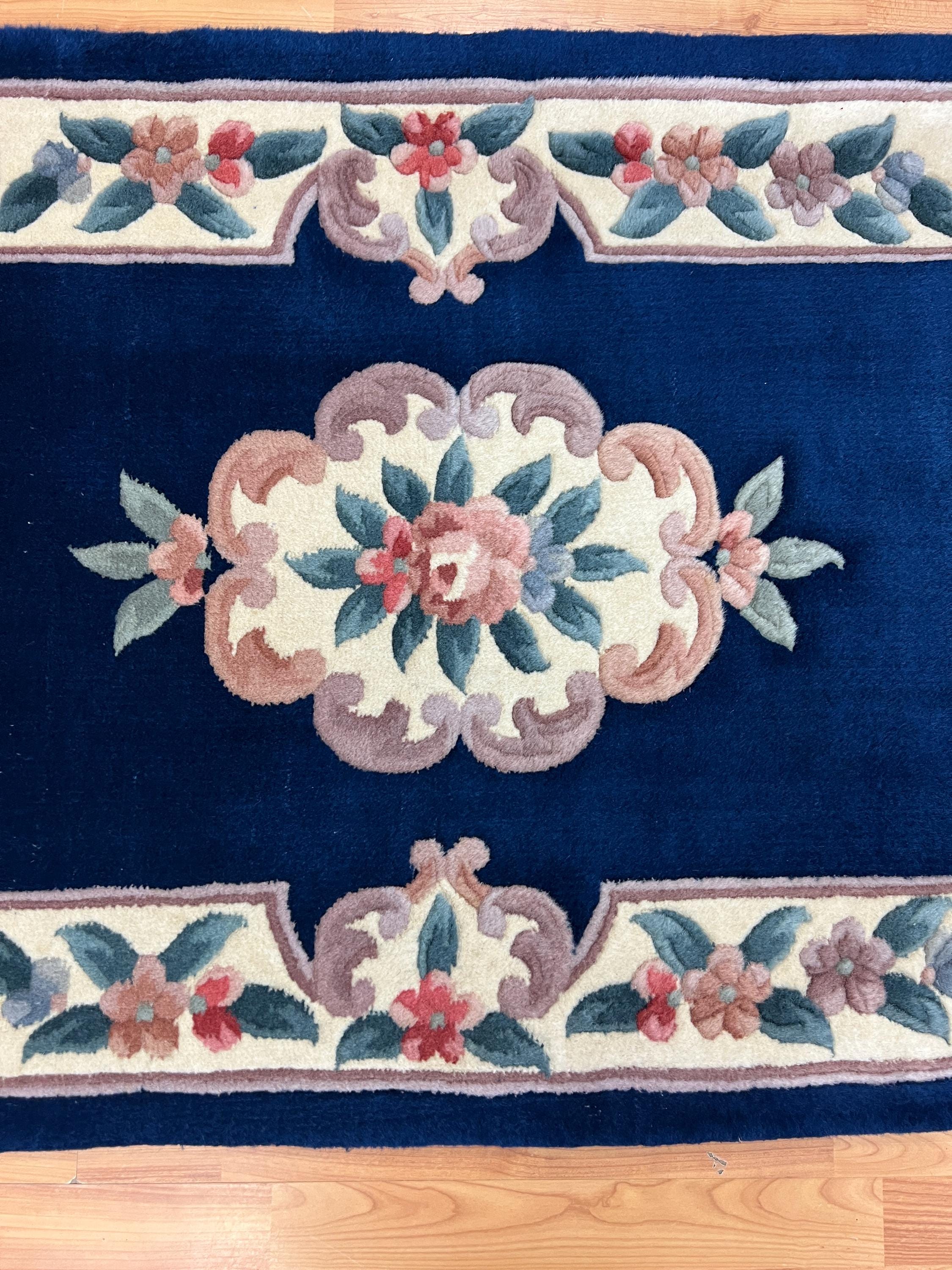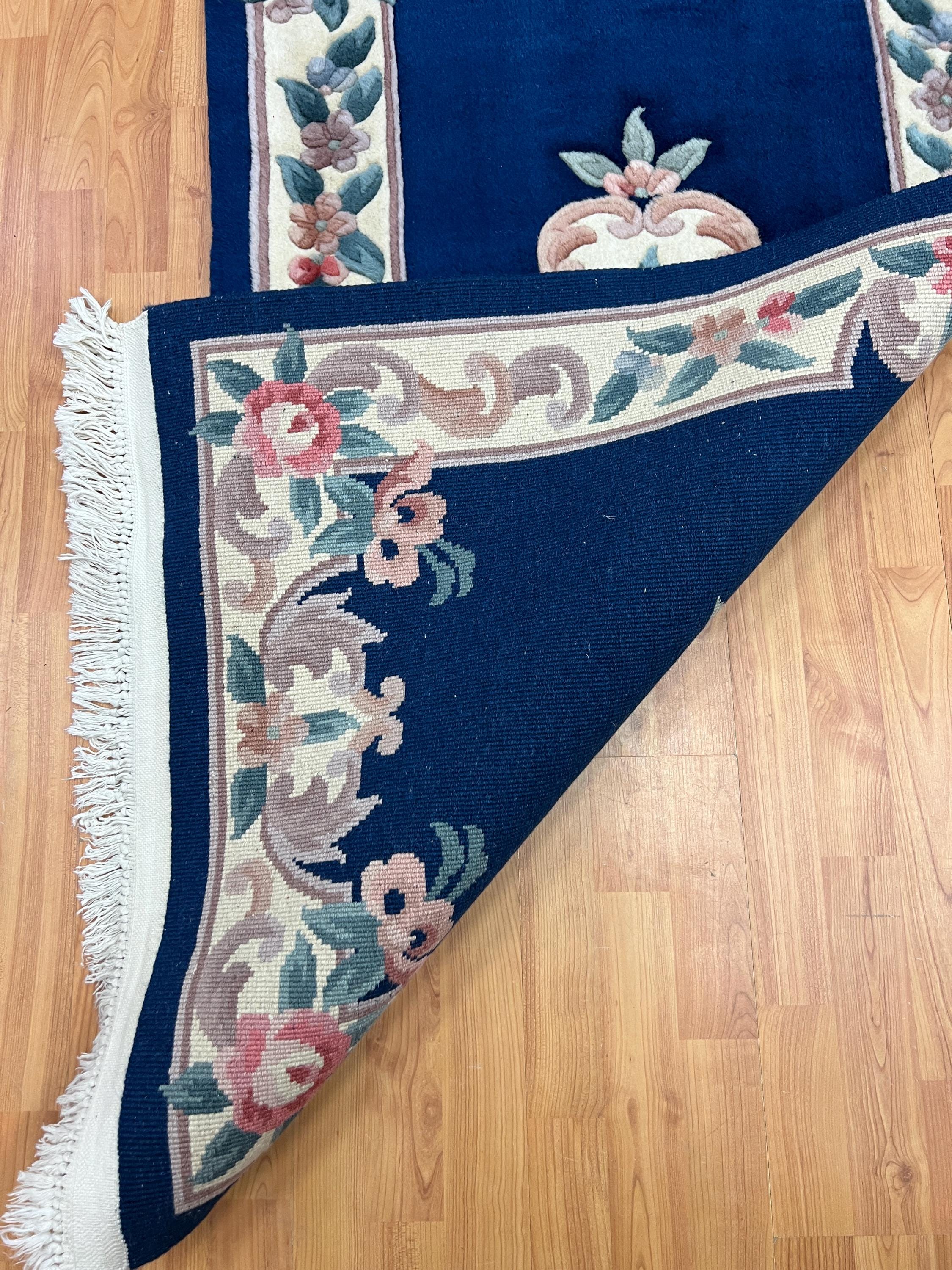 This beautiful Oriental rug is a brand new 2'7" x 8'1" Chinese Aubusson floor runner. This hand made Chinese rug is made with 100% wool.