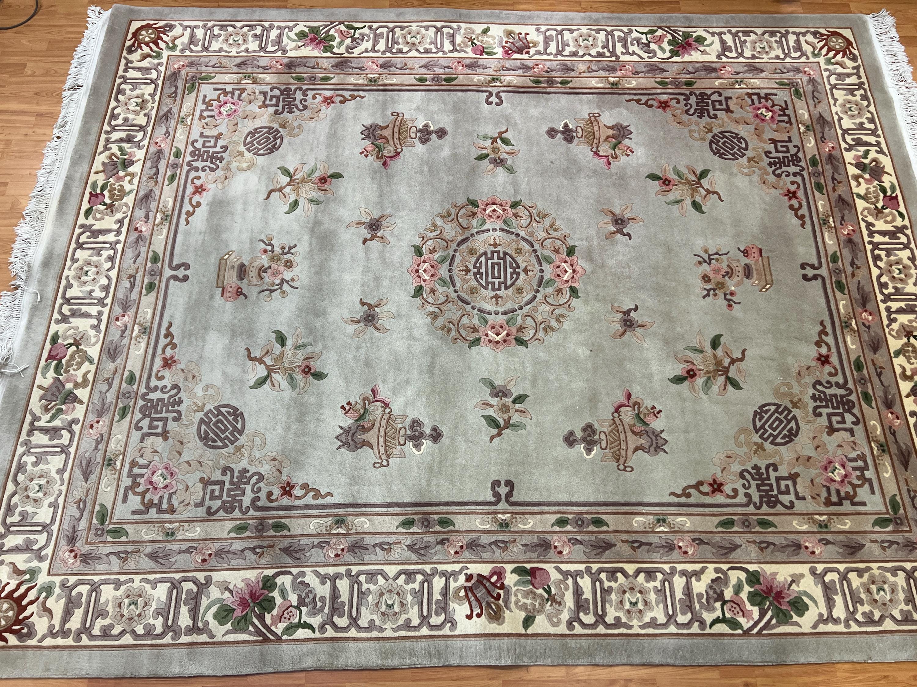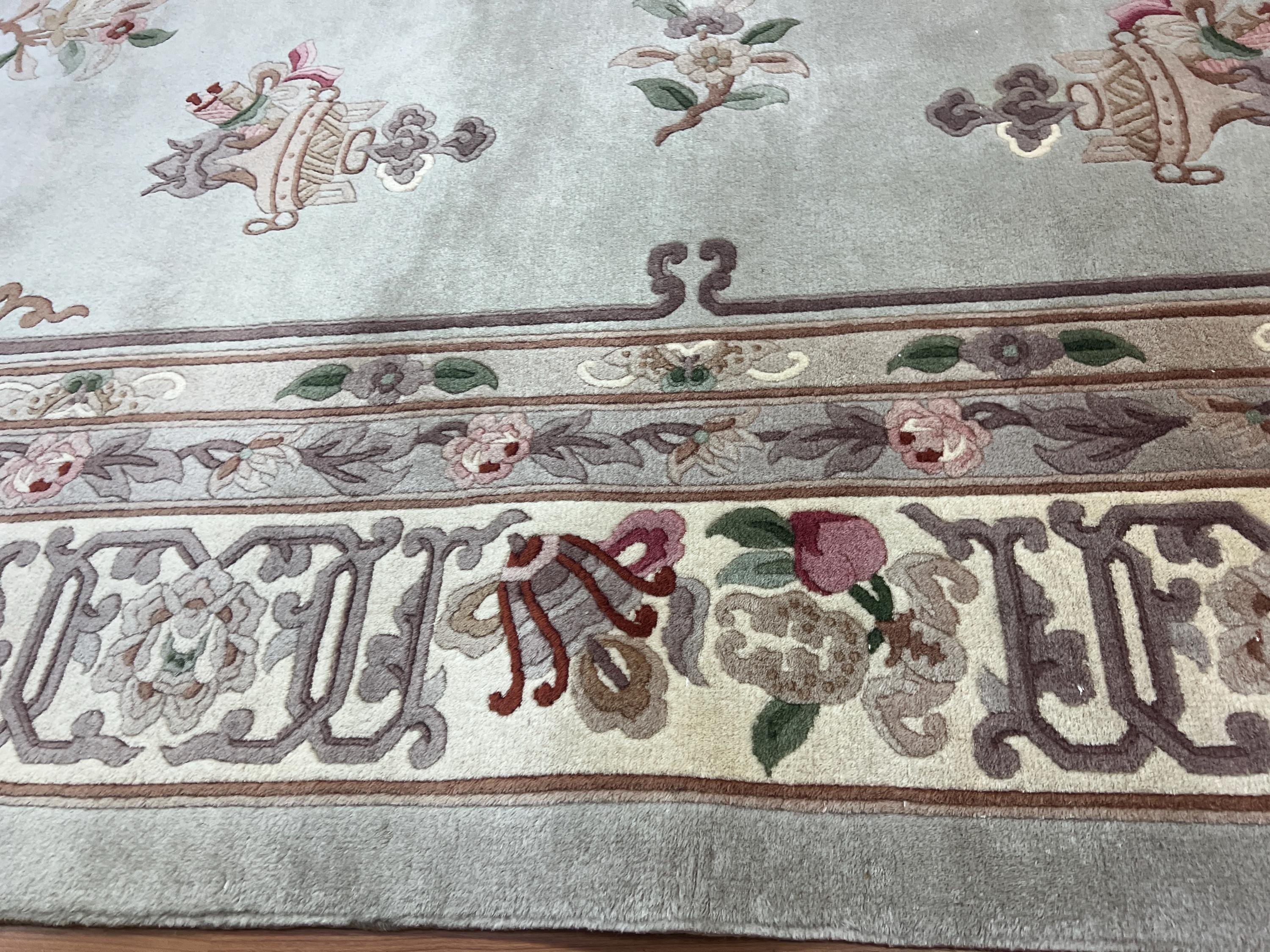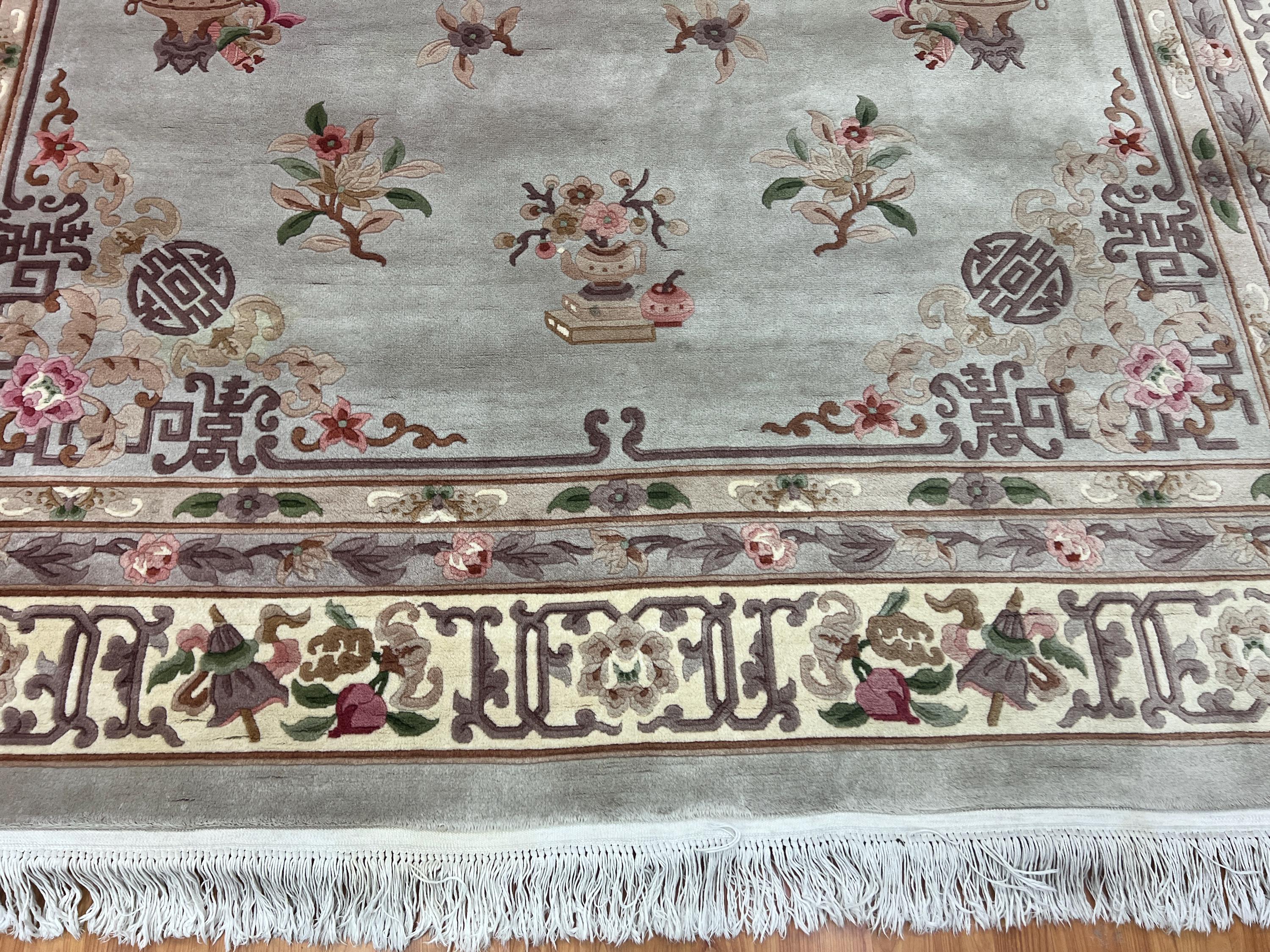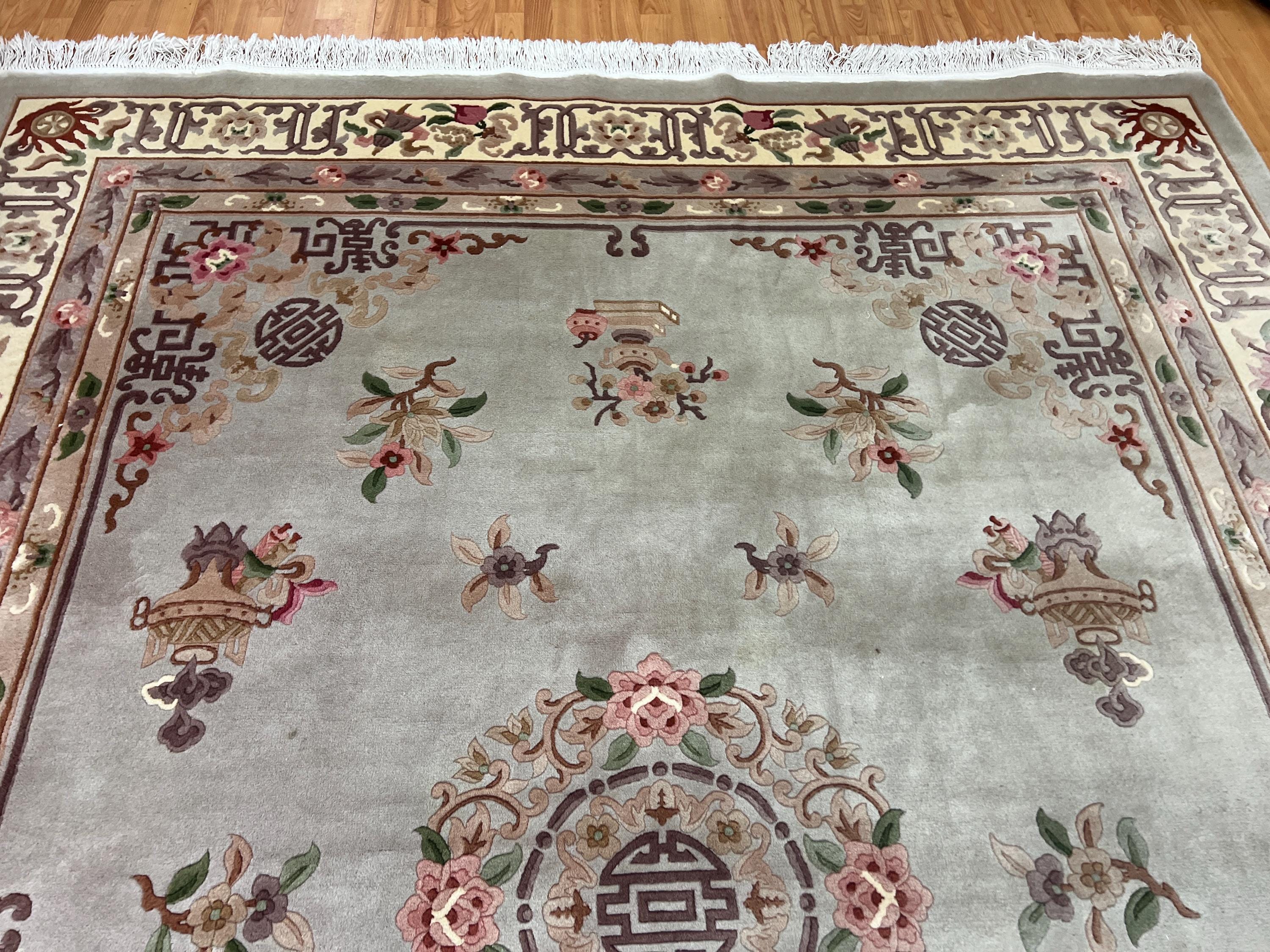 This gorgeous Oriental rug is an 8' x 10' Chinese Art Deco, circa 2000s. This hand knotted rug is made with a 100% wool, has a full pile and is in perfect condition. This rug was recently professionally hand washed.