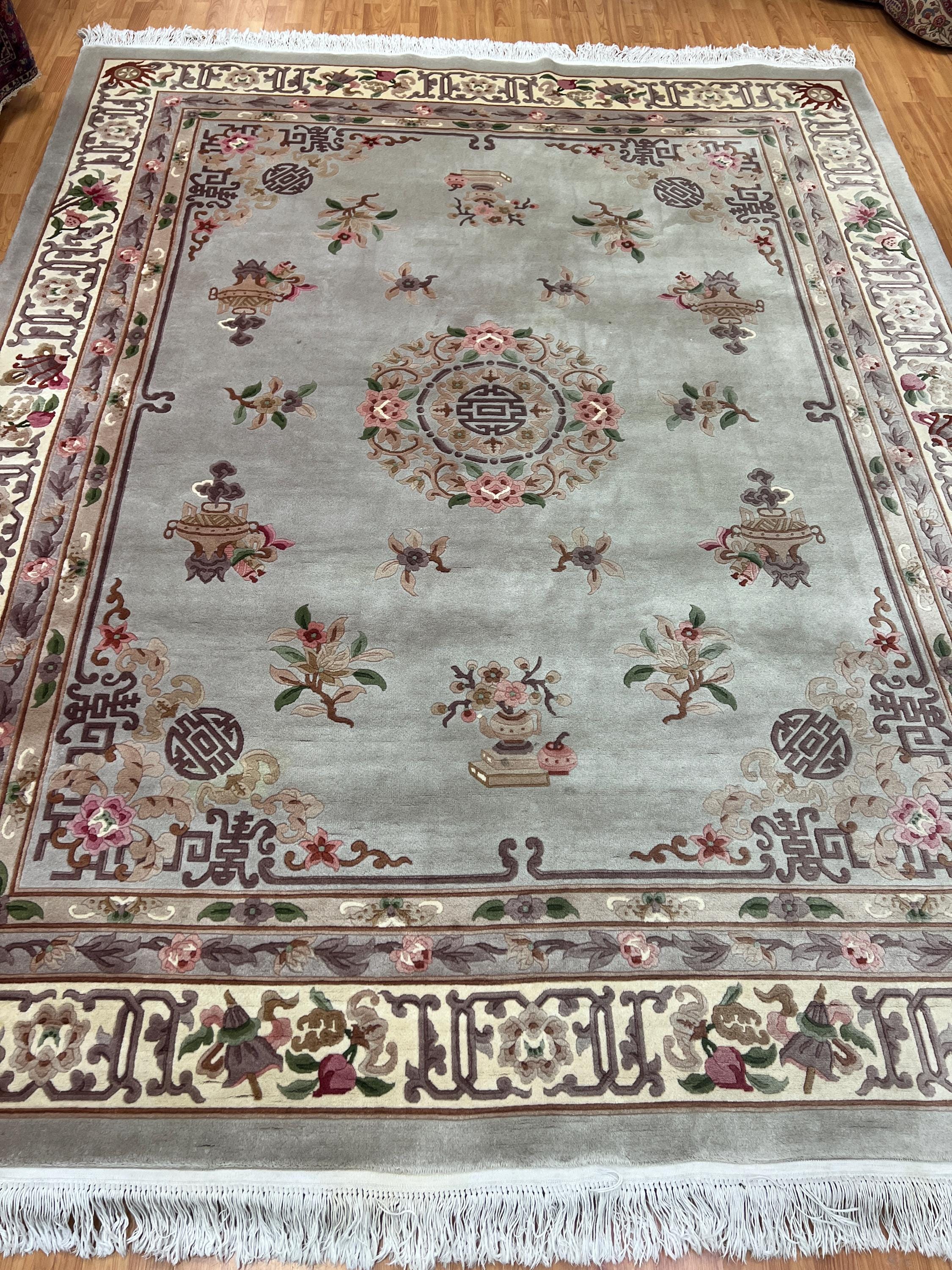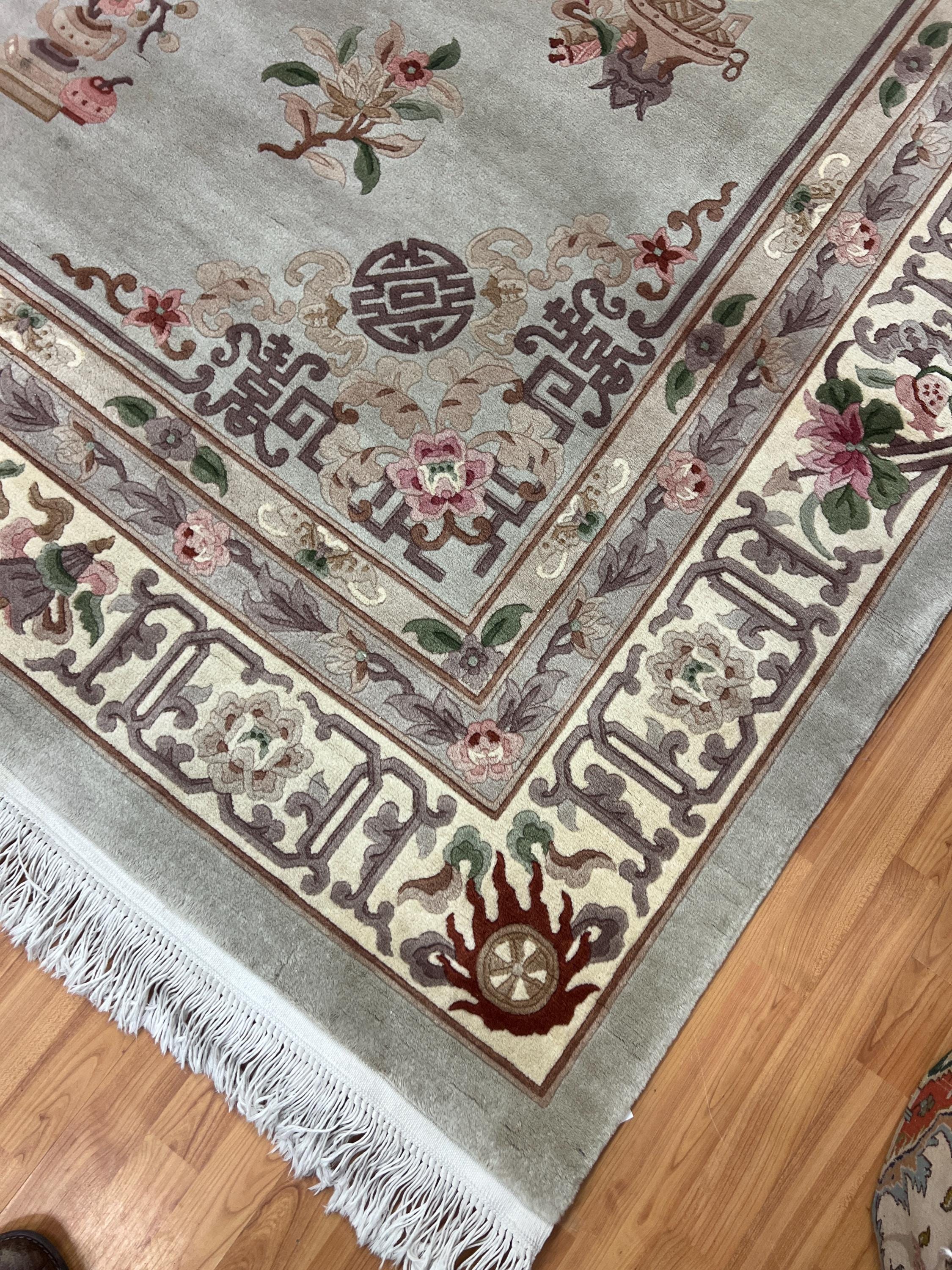 Antique Chinese Rugs and Carpets as opposed to most of the antique rug productions were woven almost exclusively for internal consumption. Since they were mostly sheltered from European and western influences, this offers us the reason why these carpets have a very unique truly ethnically Chinese look and appeal. Only during the early part of the 19th century did they open their markets to the countries of the west (for rugs – they have been exporting porcelain, bronzes, wooden and other works of art for many years prior to the 19th century). It is during this period (the early 1900′s and on) that we see a major and unmistakable change in the production, abandoning the traditional ornamental look to a more open and even Chinese Art Deco design. Rich in culture, history and folklore Chinese carpets incorporate design almost never seen in any other type of rug. Dragons, local art and ornamental objects are almost always a trademark of these productions.