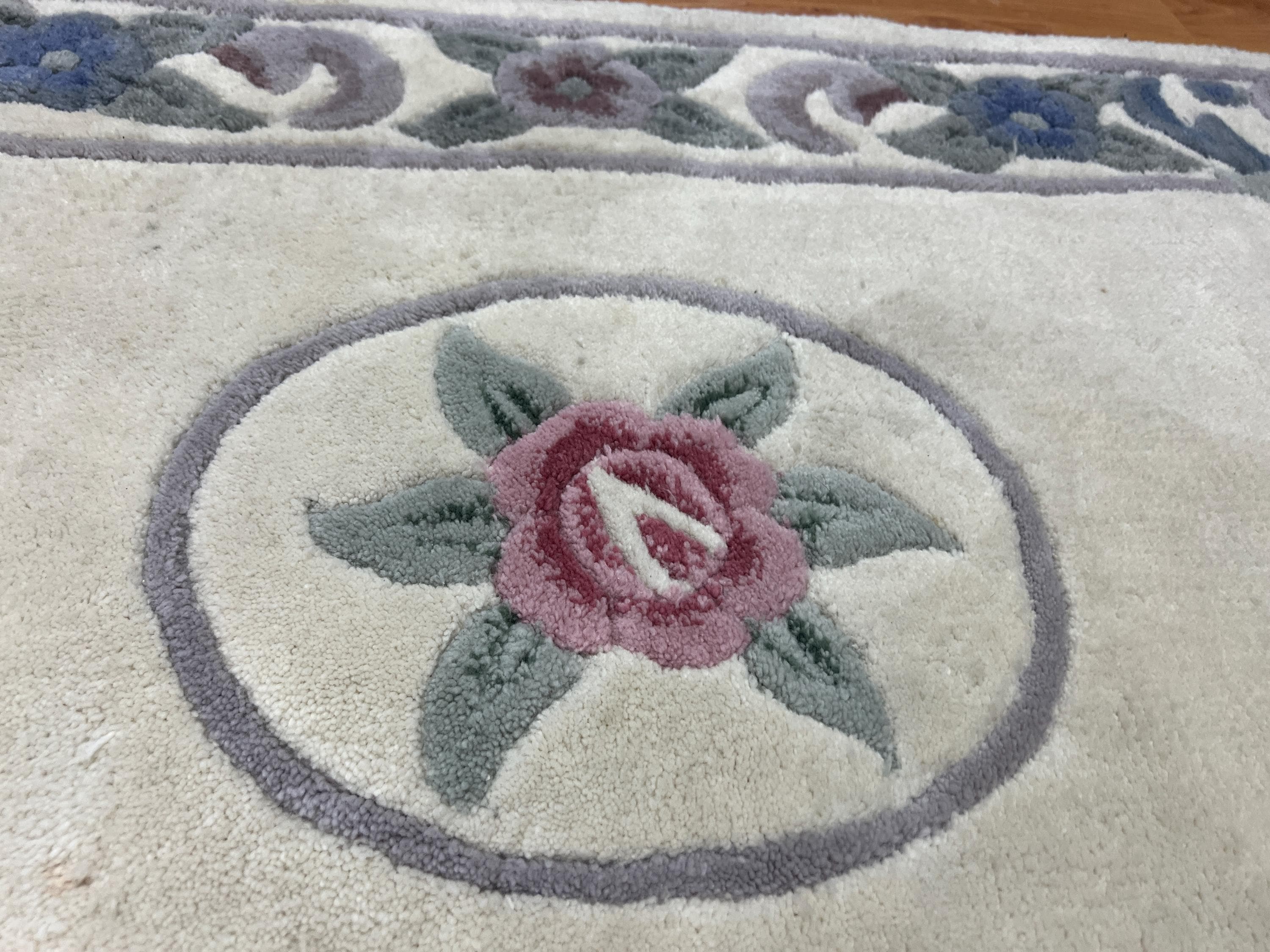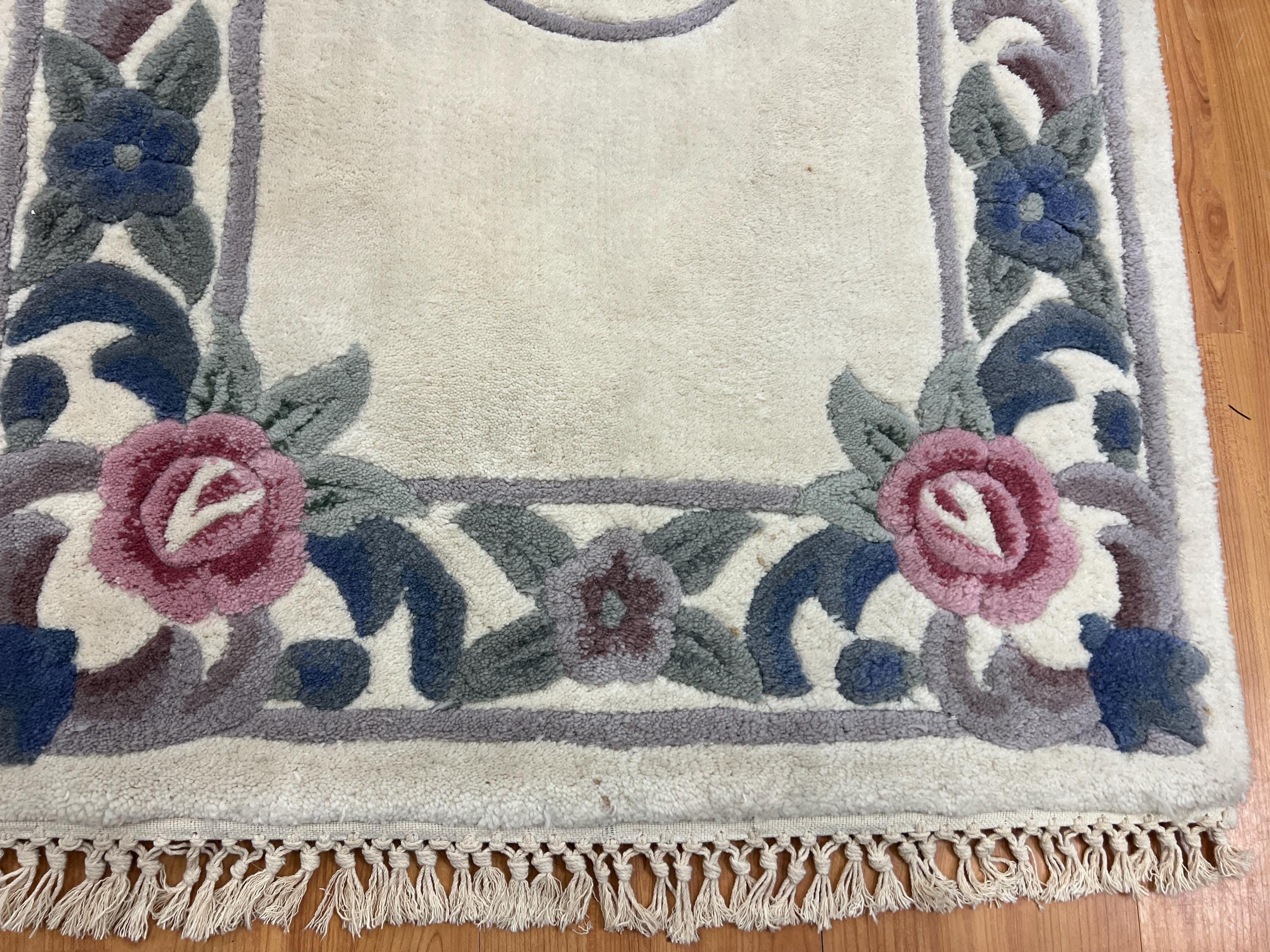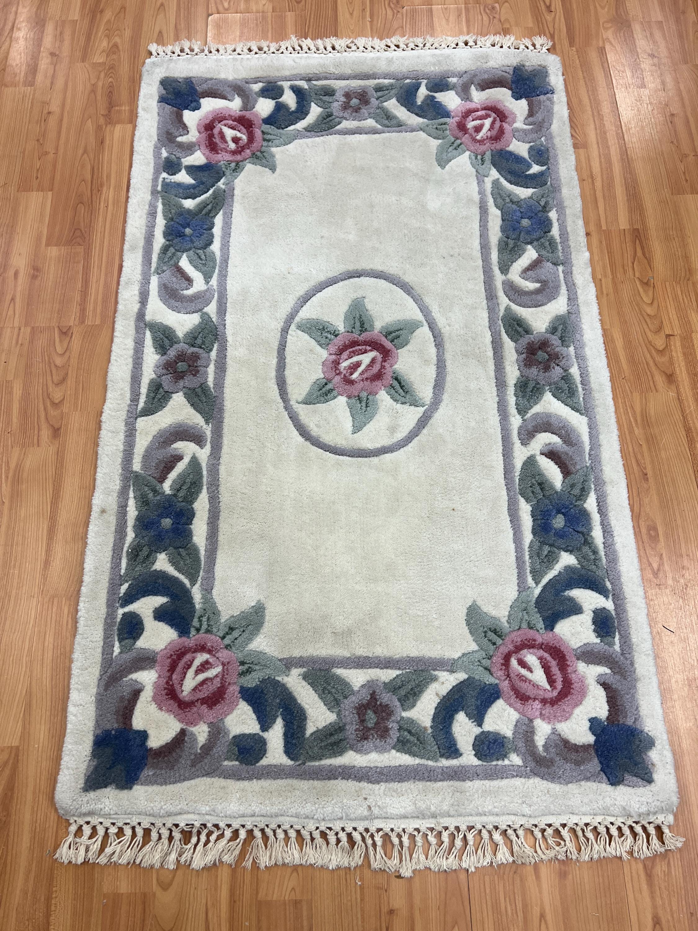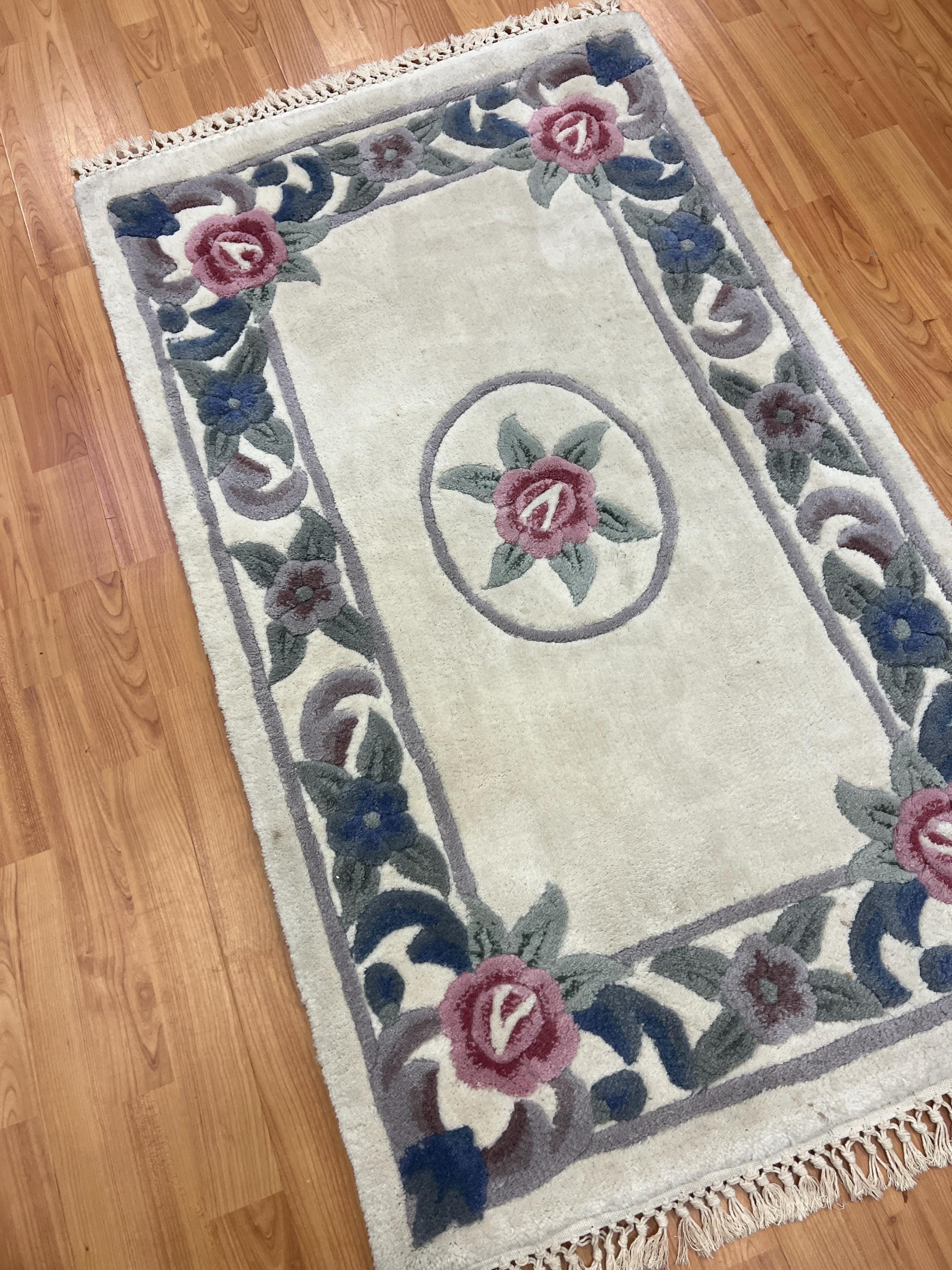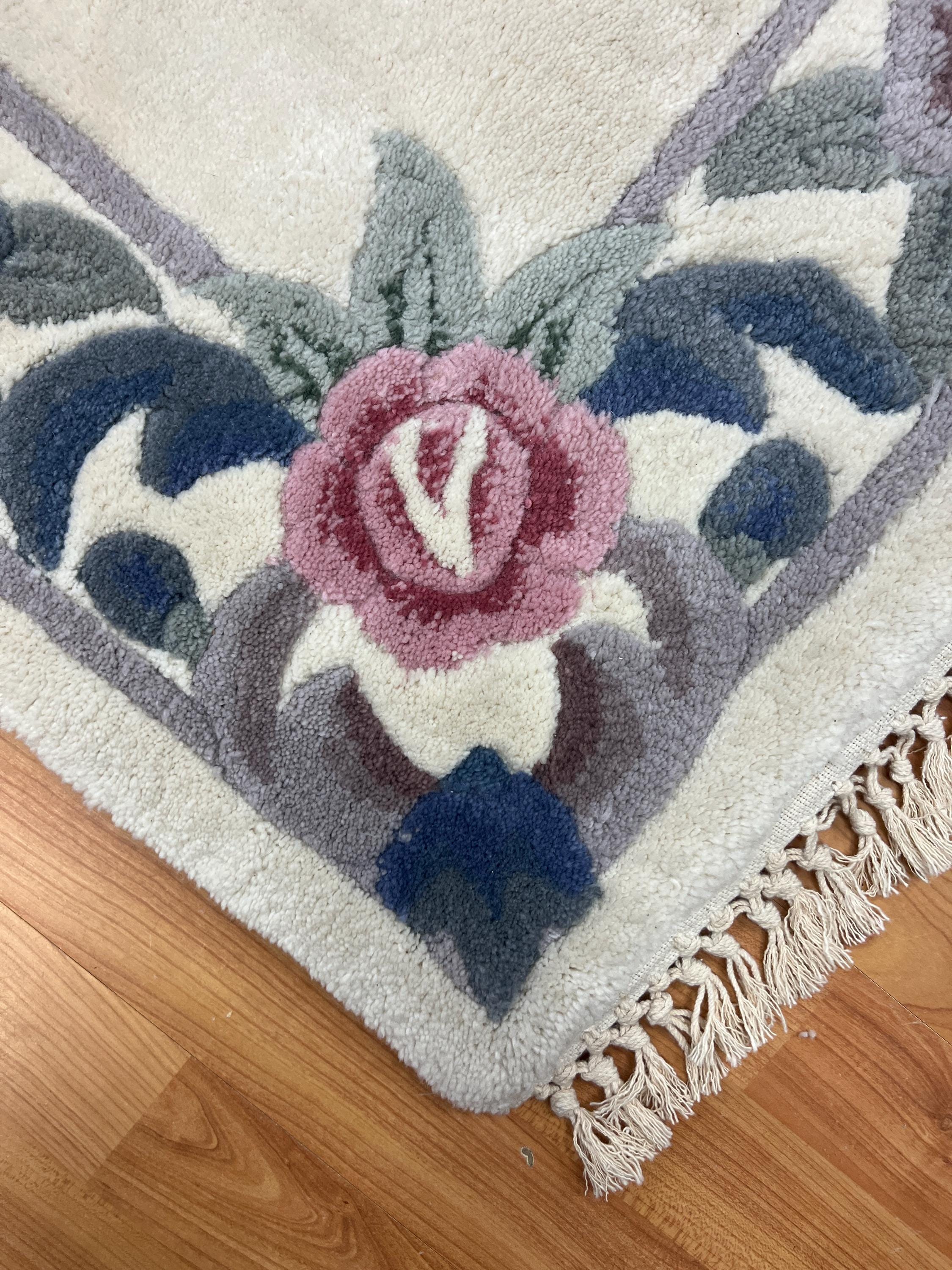 This beautiful Oriental rug is a 2'6" x 4'2" Chinese Aubusson, circa 2020s. This hand tufted Chinese rug is made with 100% wool, has a full pile and is in good condition.