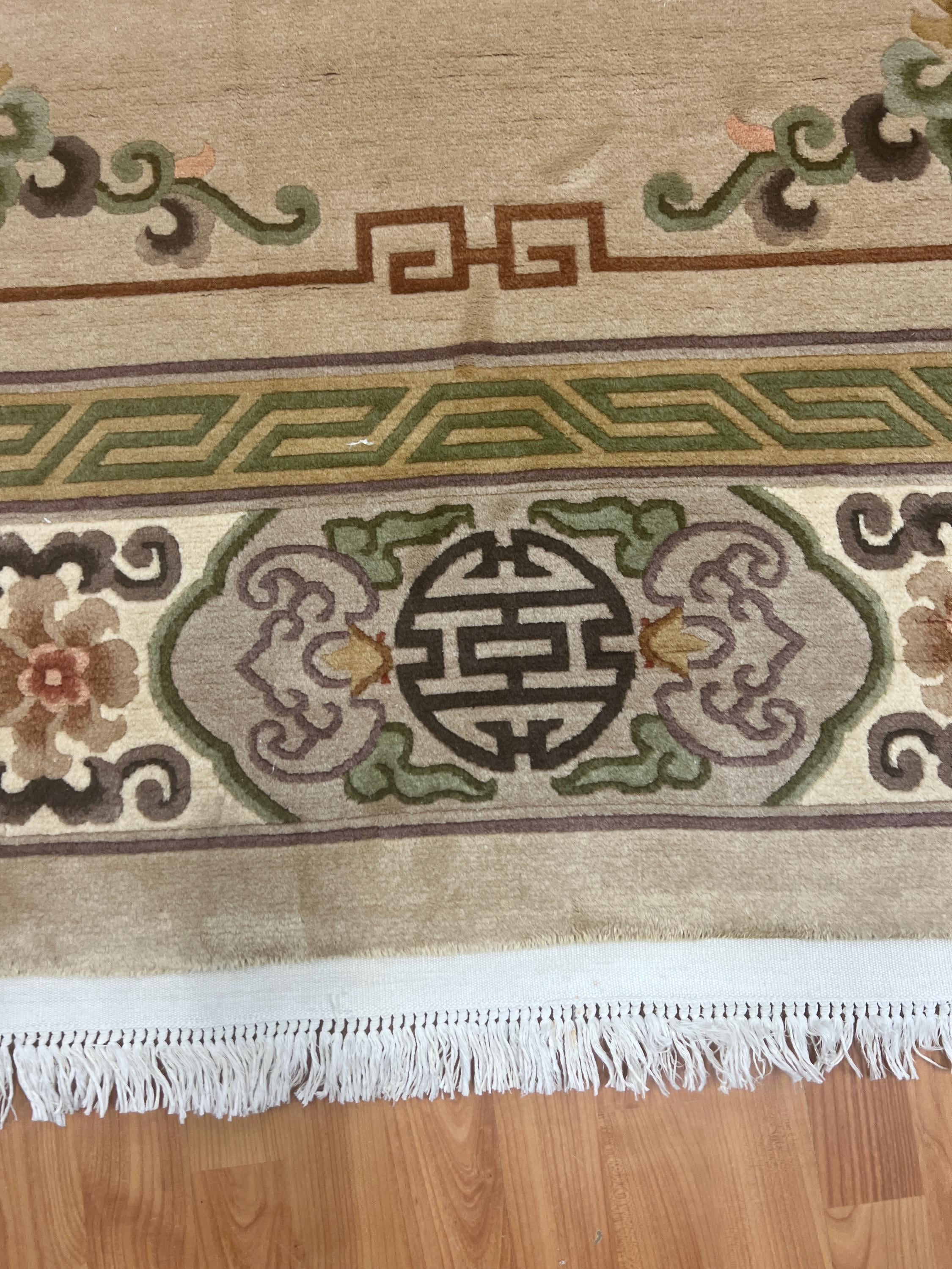 Antique Chinese Rugs and Carpets as opposed to most of the antique rug productions were woven almost exclusively for internal consumption. Since they were mostly sheltered from European and western influences, this offers us the reason why these carpets have a very unique truly ethnically Chinese look and appeal. Only during the early part of the 19th century did they open their markets to the countries of the west (for rugs – they have been exporting porcelain, bronzes, wooden and other works of art for many years prior to the 19th century). It is during this period (the early 1900′s and on) that we see a major and unmistakable change in the production, abandoning the traditional ornamental look to a more open and even Chinese Art Deco design. Rich in culture, history and folklore Chinese carpets incorporate design almost never seen in any other type of rug. Dragons, local art and ornamental objects are almost always a trademark of these productions.