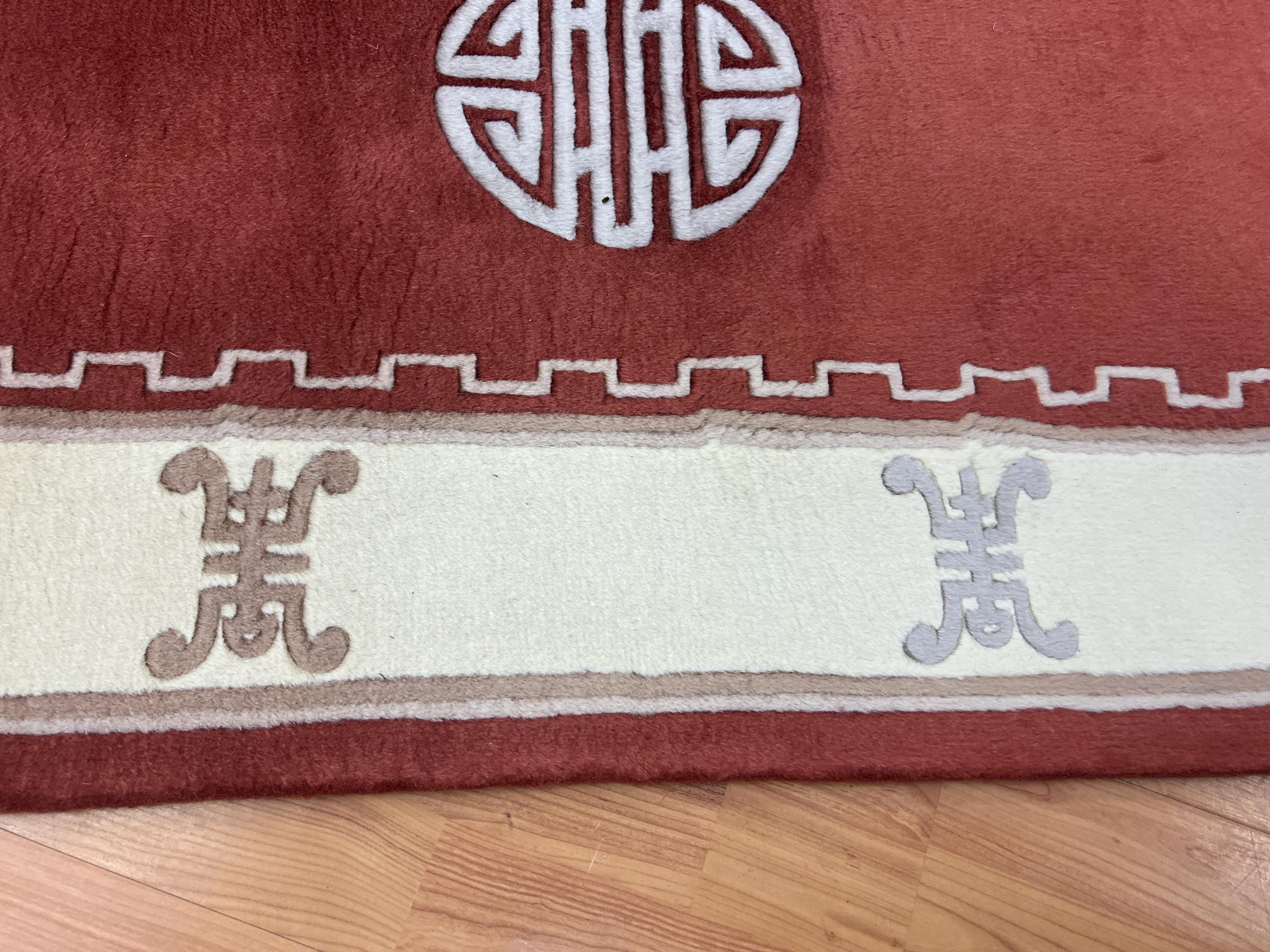 Antique Chinese Rugs and Carpets as opposed to most of the antique rug productions were woven almost exclusively for internal consumption. Since they were mostly sheltered from European and western influences, this offers us the reason why these carpets have a very unique truly ethnically Chinese look and appeal. Only during the early part of the 19th century did they open their markets to the countries of the west (for rugs – they have been exporting porcelain, bronzes, wooden and other works of art for many years prior to the 19th century). It is during this period (the early 1900′s and on) that we see a major and unmistakable change in the production, abandoning the traditional ornamental look to a more open and even Chinese Art Deco design. Rich in culture, history and folklore Chinese carpets incorporate design almost never seen in any other type of rug. Dragons, local art and ornamental objects are almost always a trademark of these productions.