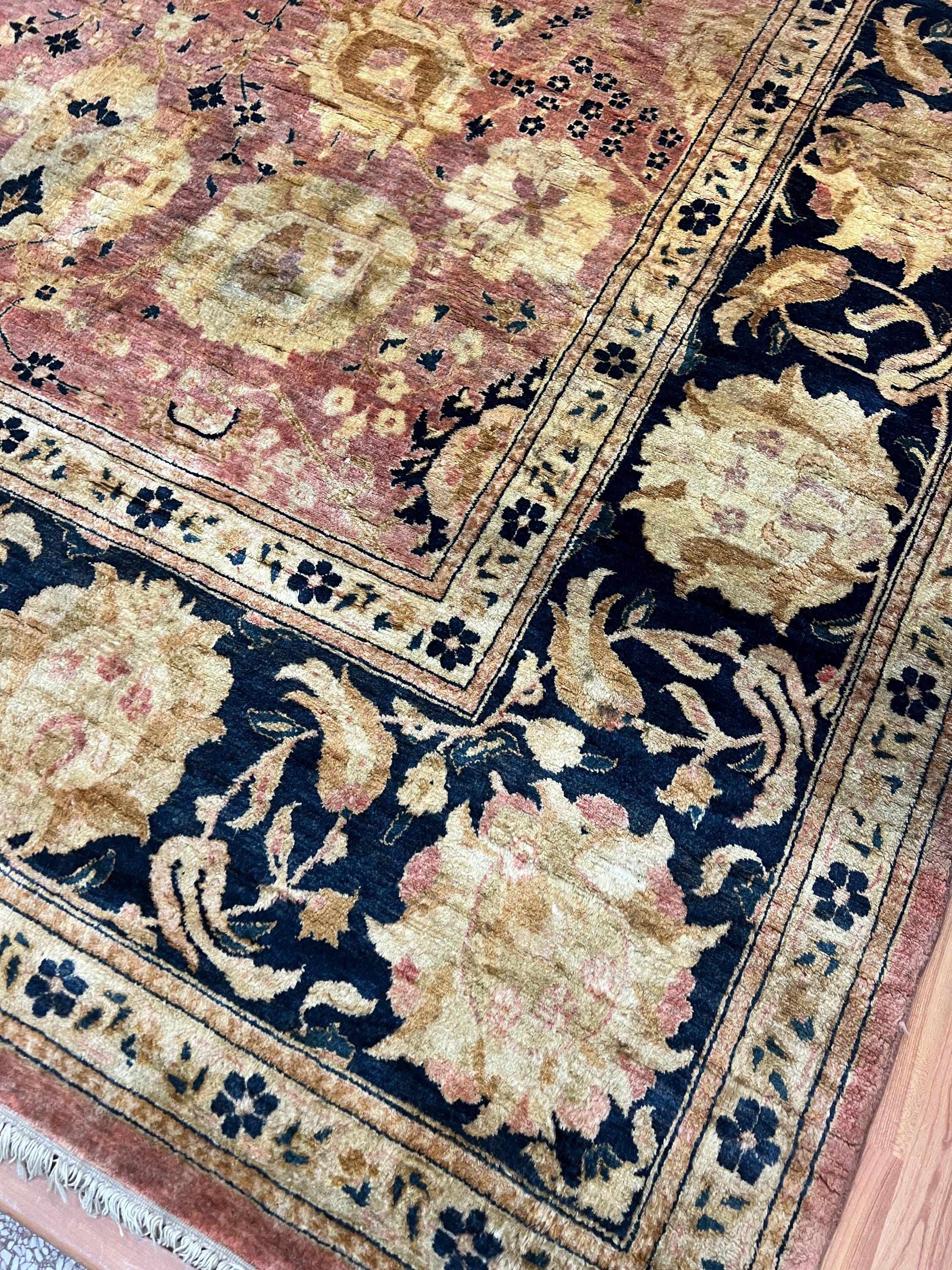 Traditionally, India has excelled in the production of fine textiles, palatial carpets, magnificent shawls and Art Deco rugs that were influenced by colonial British trends. Despite adverse conditions and invasions from overseas colonists and imperial powers, Indian craftspeople managed to maintain a diverse and individual textile culture. Even when the weavers of antique Indian rugs borrowed designs from Persia, they immediately attained a new flavor. The colors are rich, the motifs are grand and the composition of antique Indian rugs is always elegant.