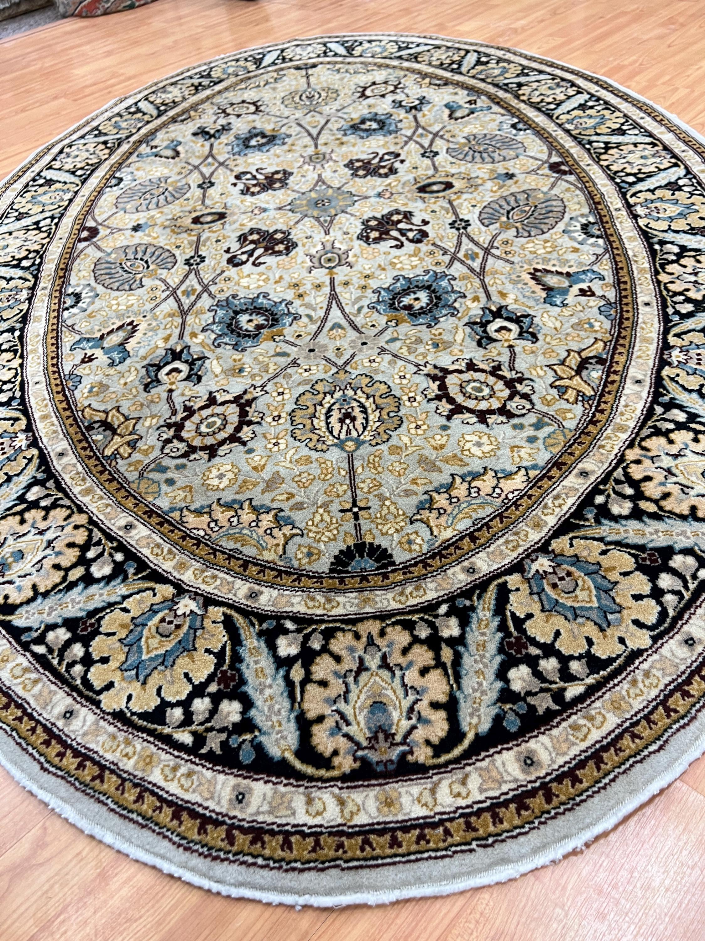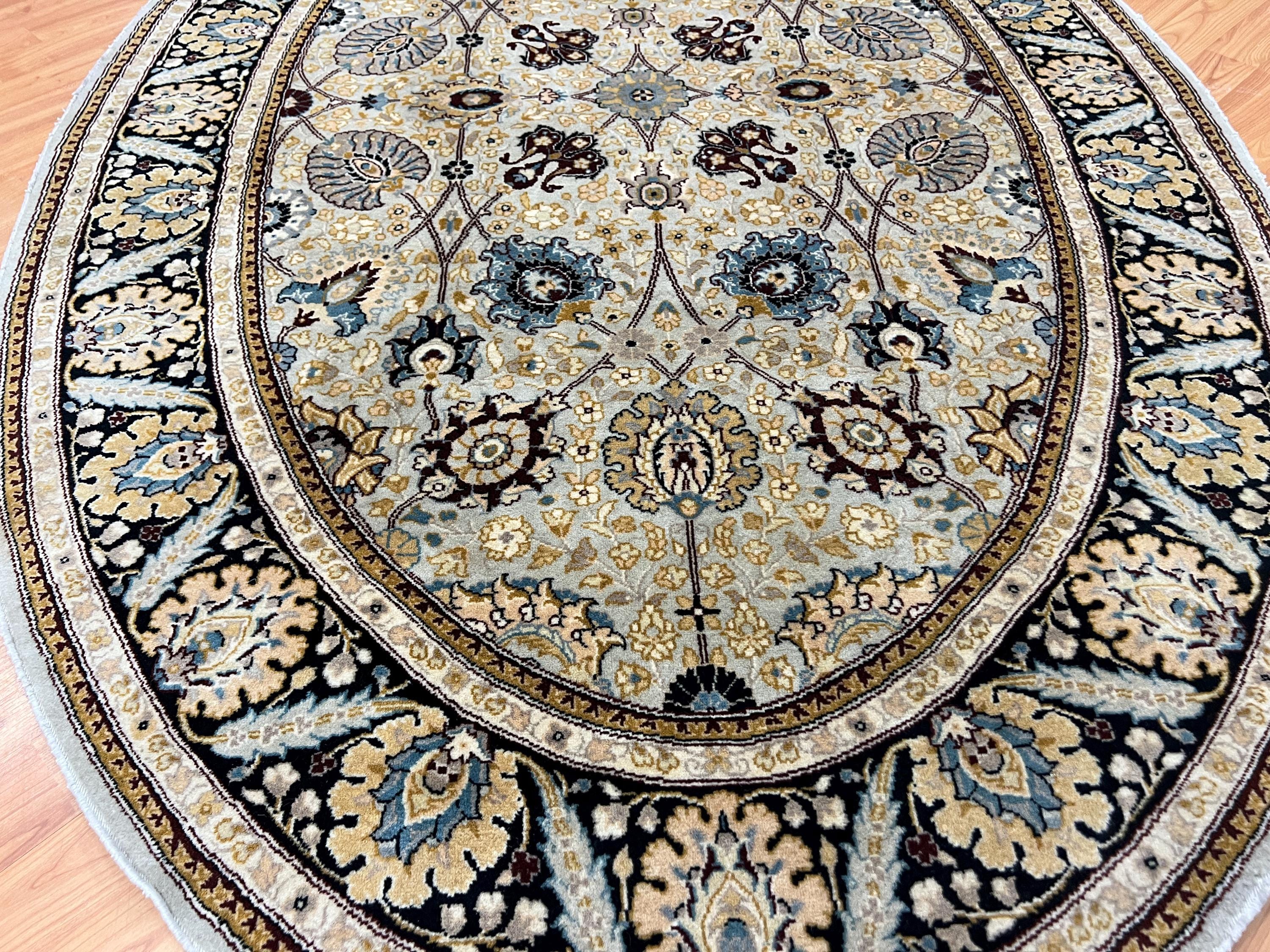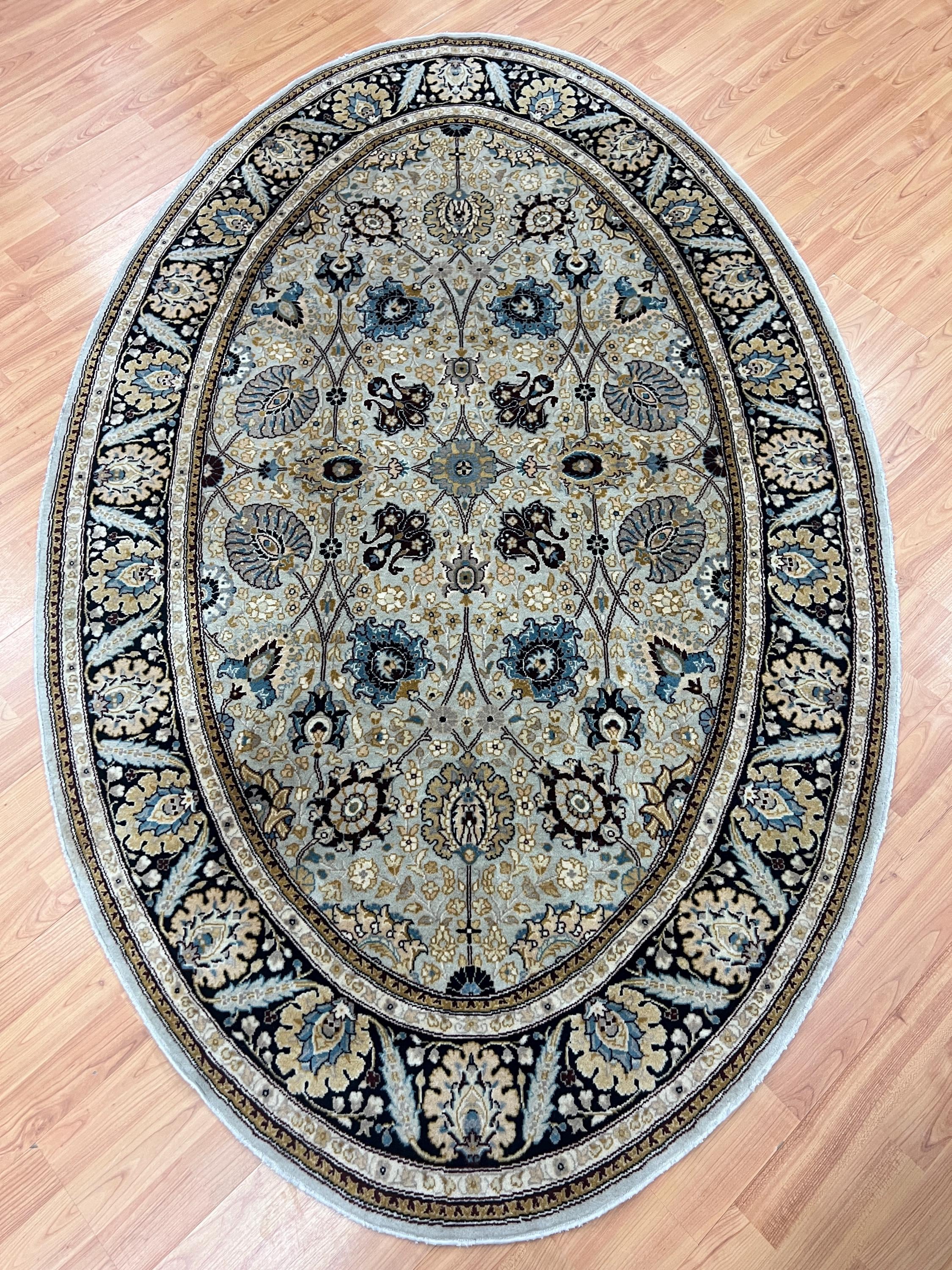 This beautiful Oriental rug is an oval 4'1" x 6'5" Pakistani Tabriz that has been very finely woven, circa 2000s. This handmade rug is made with a 100% wool, has a full pile and is in good condition.