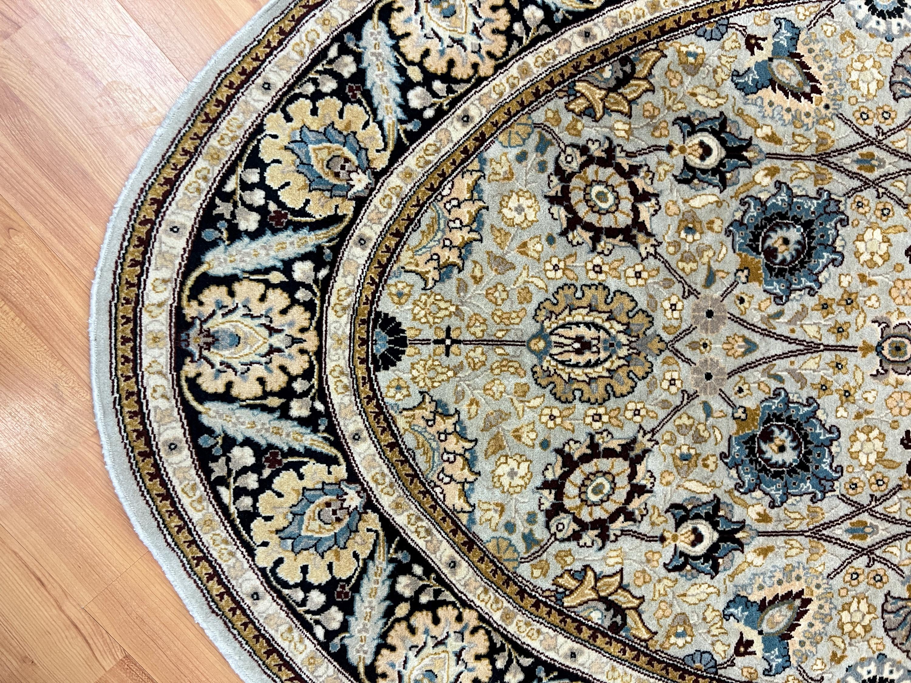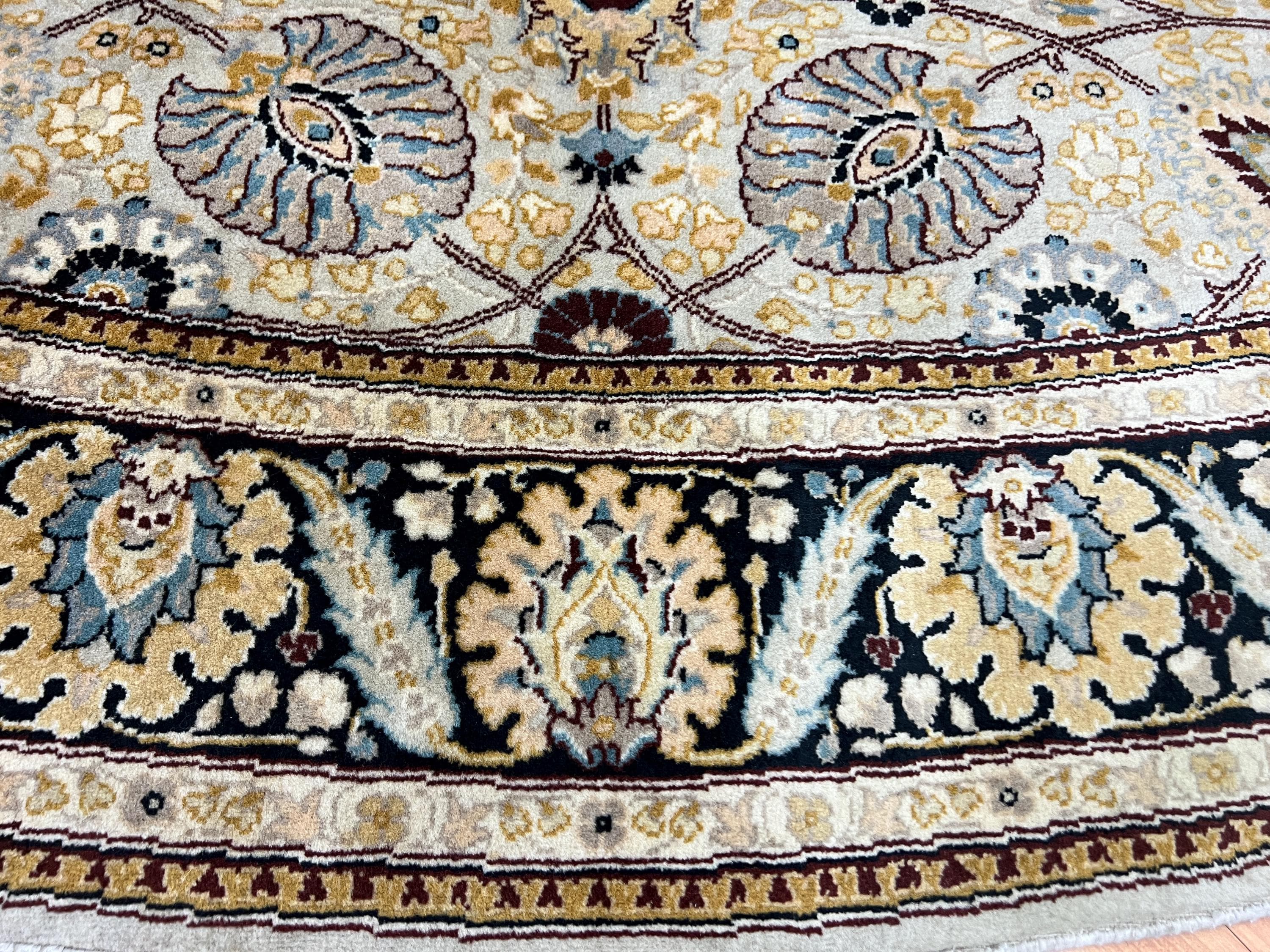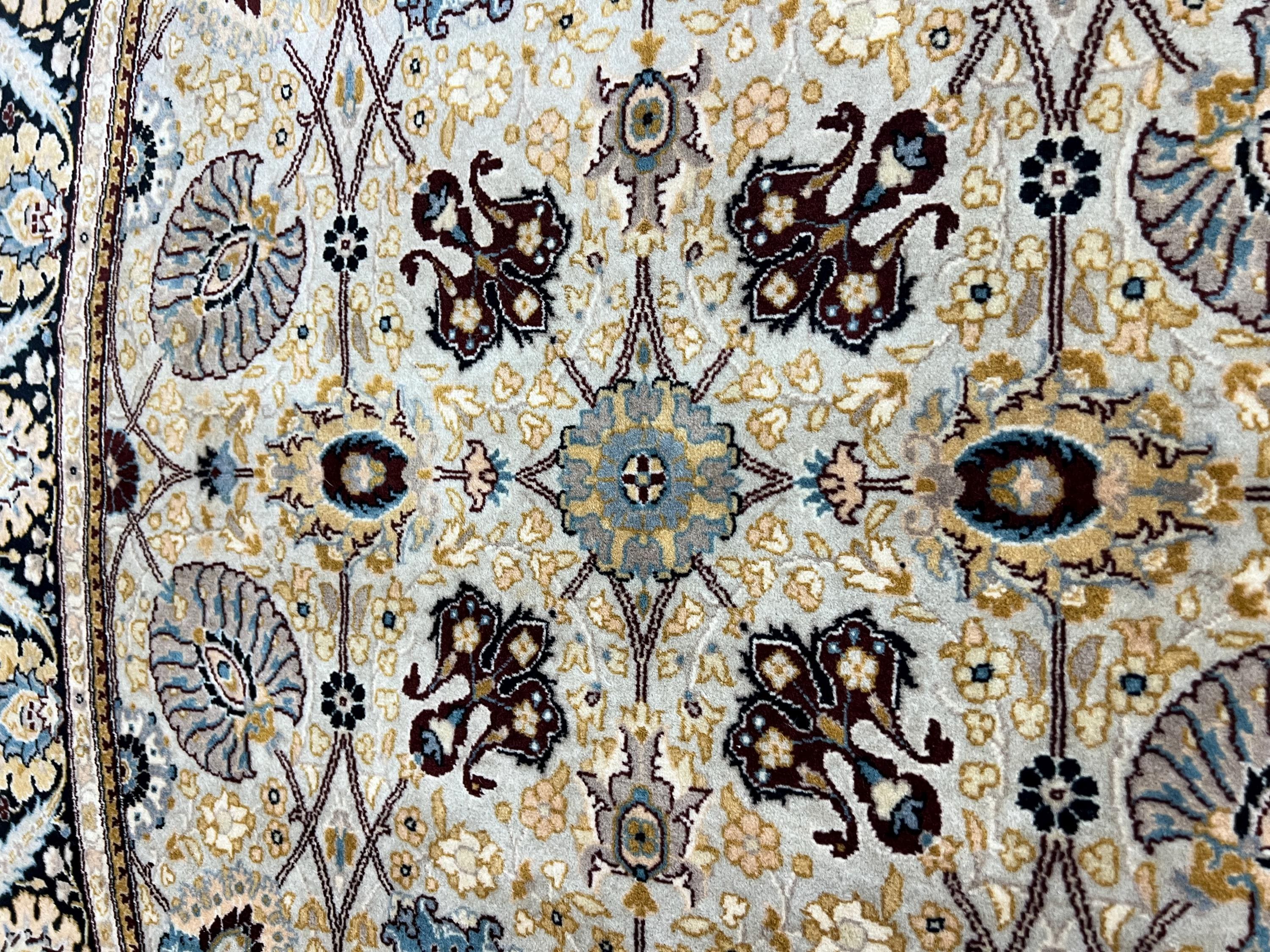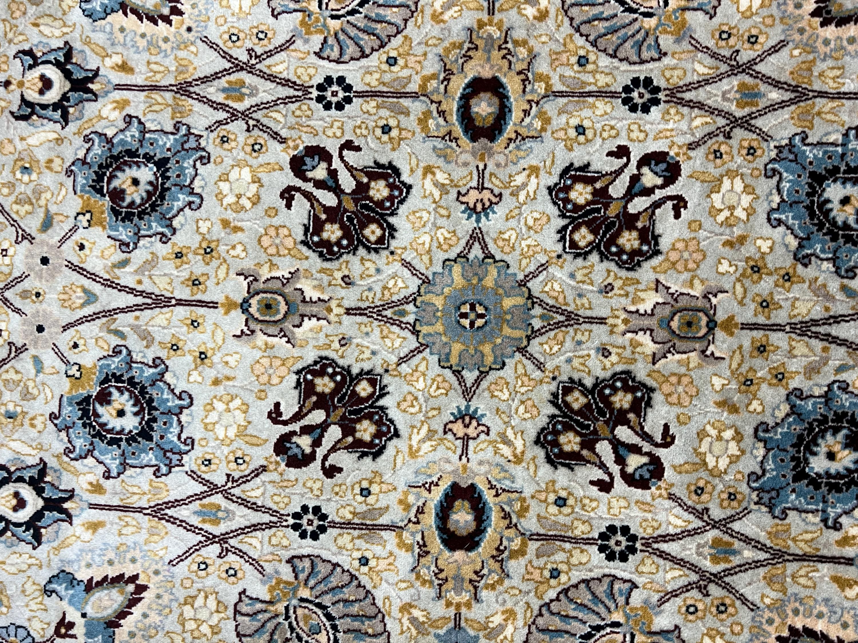 Tabriz, located to the north-west, is Persia's second oldest city and has been at the center of the rug-making world for hundreds, perhaps thousands of years. Most Tabriz rugs have a powerful red or blue with contrasting ivory background. Softer greens, blues and browns can be found in newer carpets to meet modern tastes and interiors. Tabriz is the host to some of the most beautiful rugs in the world and can have the price tag to match. In general the knots are fairly dense but can range anywhere between 120-850 knots per square inch (KPSI). The foundation is normally cotton with a wool pile in most cases. The popularity of Tabriz rugs dictates that all ranges of sizes, shapes, qualities and materials will be used. However, in general a good Tabriz rug will be of a high standard, medium to large in size and made with fine, soft wool.