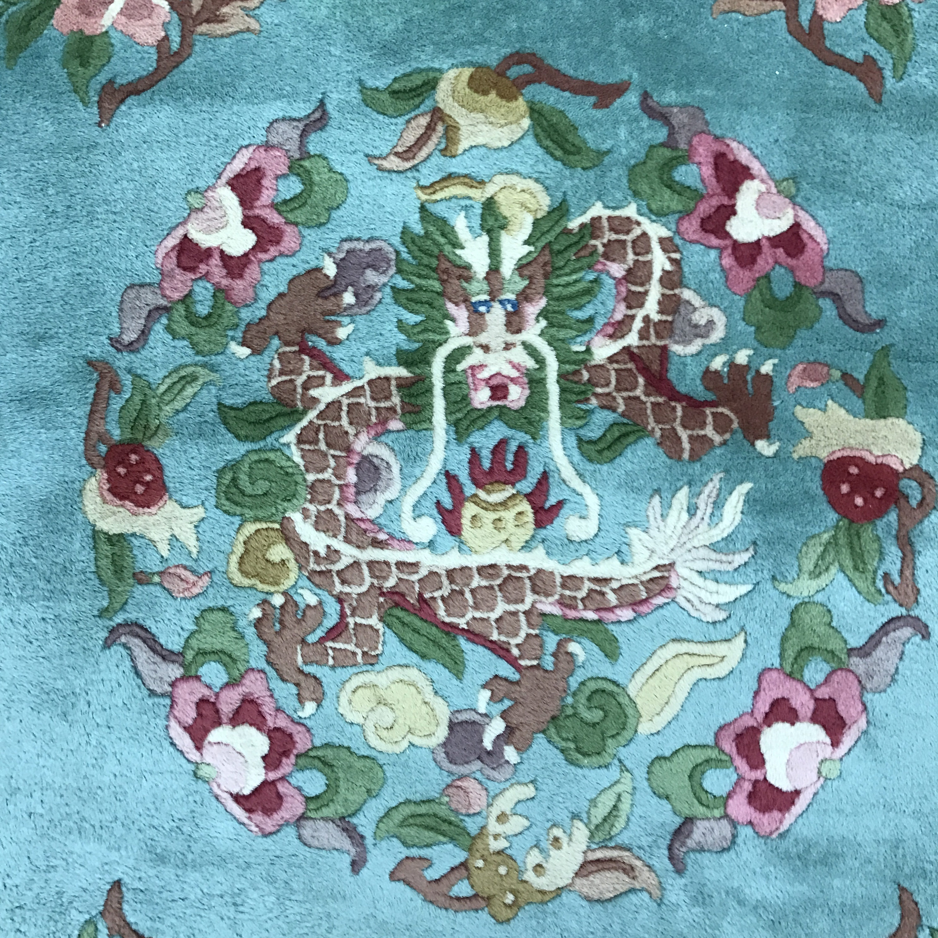 Antique Chinese Rugs and Carpets as opposed to most of the antique rug productions were woven almost exclusively for internal consumption. Since they were mostly sheltered from European and western influences, this offers us the reason why these carpets have a very unique truly ethnically Chinese look and appeal. Only during the early part of the 19th century did they open their markets to the countries of the west (for rugs – they have been exporting porcelain, bronzes, wooden and other works of art for many years prior to the 19th century). It is during this period (the early 1900′s and on) that we see a major and unmistakable change in the production, abandoning the traditional ornamental look to a more open and even Chinese Art Deco design. Rich in culture, history and folklore Chinese carpets incorporate design almost never seen in any other type of rug. Dragons, local art and ornamental objects are almost always a trademark of these productions.