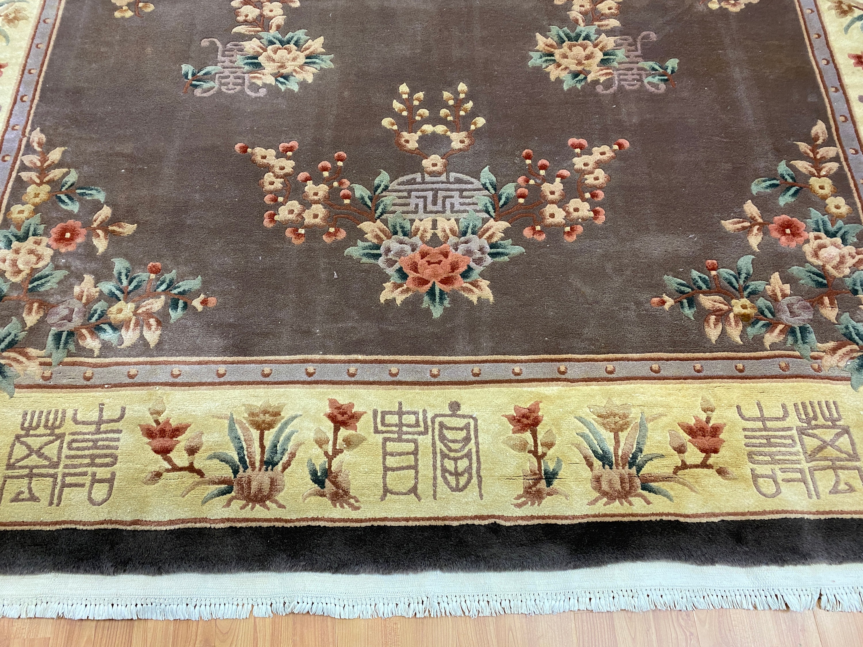 Antique Chinese Rugs and Carpets as opposed to most of the antique rug productions were woven almost exclusively for internal consumption. Since they were mostly sheltered from European and western influences, this offers us the reason why these carpets have a very unique truly ethnically Chinese look and appeal. Only during the early part of the 19th century did they open their markets to the countries of the west (for rugs – they have been exporting porcelain, bronzes, wooden and other works of art for many years prior to the 19th century). It is during this period (the early 1900′s and on) that we see a major and unmistakable change in the production, abandoning the traditional ornamental look to a more open and even Chinese Art Deco design. Rich in culture, history and folklore Chinese carpets incorporate design almost never seen in any other type of rug. Dragons, local art and ornamental objects are almost always a trademark of these productions.